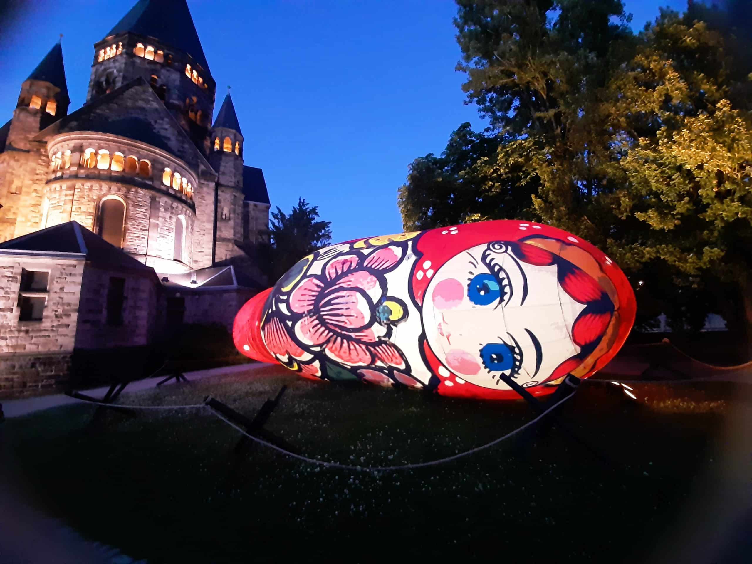 1. Au cœur du jardin d’amour (Temple Neuf) se trouve l’œuvre Masha d’Anton Dehtiarov, Marek Kvetan et Svitlana Reinish. Représentant une matriochka isolée, cette poupée russe traditionnelle nous rappelle l’actualité pressante de la guerre en Ukraine. Cette œuvre profondément engagée a été réalisée par trois artistes contraints de quitter l’Ukraine en raison du conflit armé.