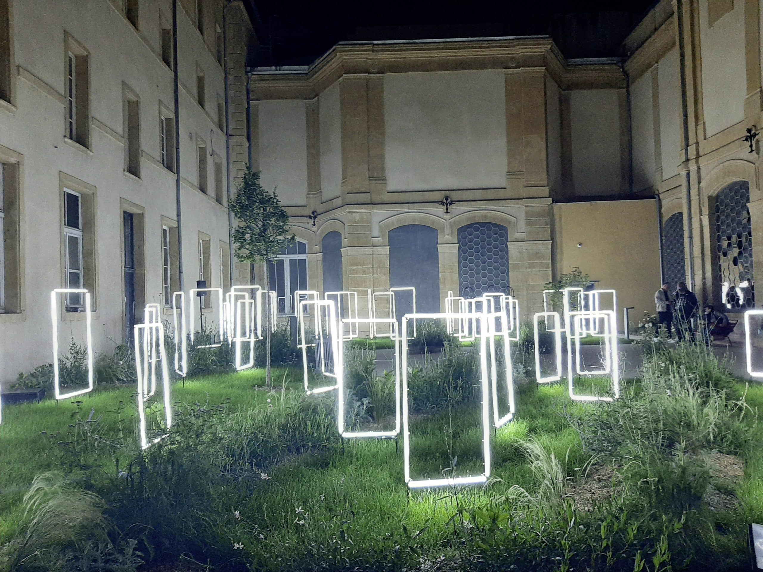 5. Installée dans la cour du musée de la Cour d’Or, l’œuvre The Fragments réalisée par le duo français NIID et l’artiste slovaque sedemminut est une série de rectangles lumineux qui bouleverse notre rapport à l’espace. Par l’utilisation de formes simples, l’artiste a la volonté d’illustrer « la complexité de la croissance urbaine ». Une installation captivante et envoûtante !
