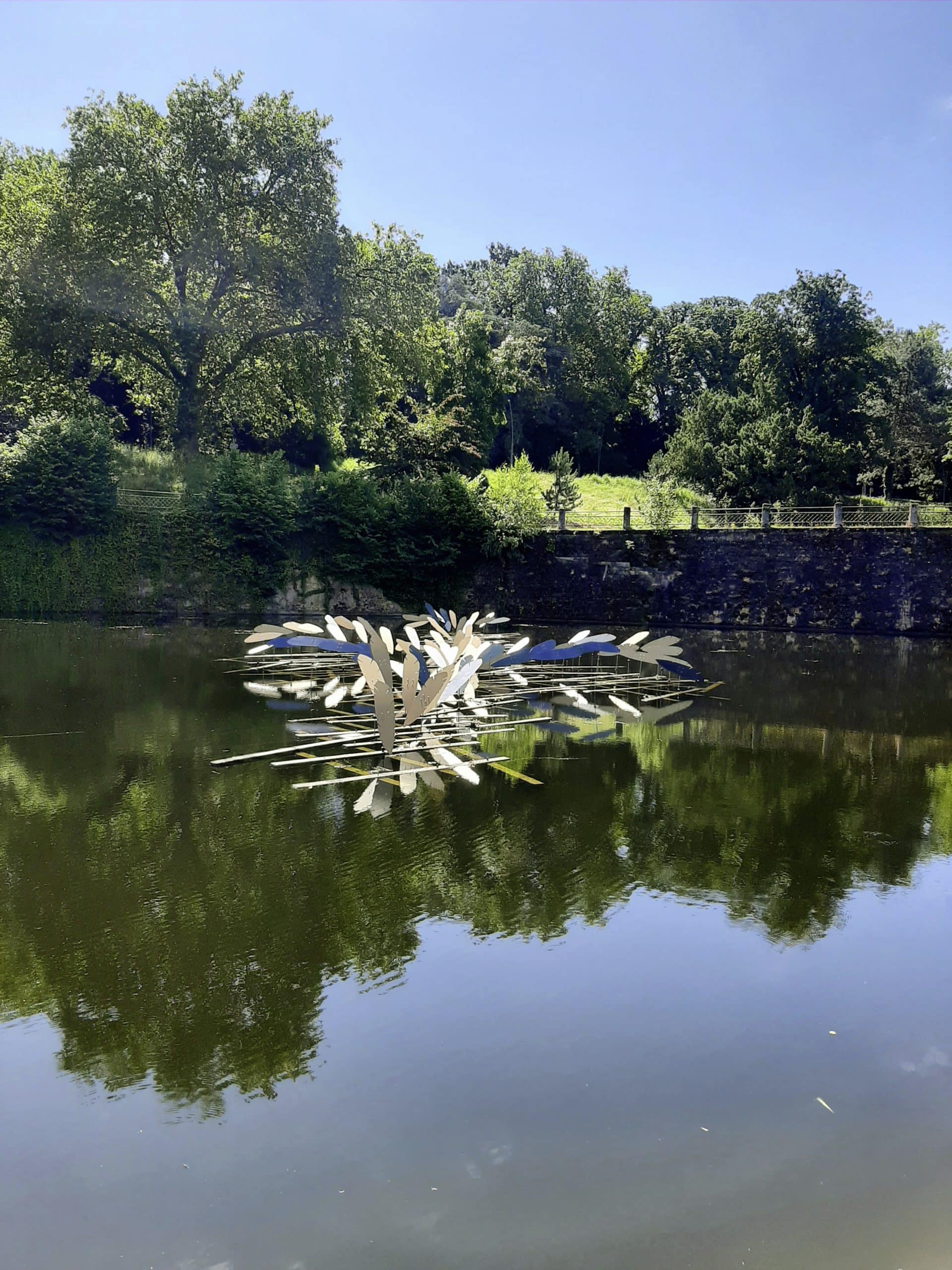 8. À quelques pas de la maison de l’éclusier (Plan d’eau) se trouve l’œuvre « L’envol » de Benjamin Nesme et Marc Sicard, une installation sur l’eau représentant un oiseau sur le point de s’envoler. Mêlant mouvement et stabilité, cette œuvre s’insère parfaitement dans cet endroit florissant et harmonieux.
