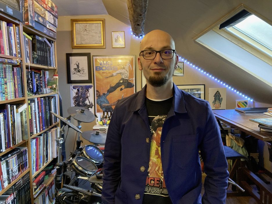 « Je suis un peu schizophrène en matière de musiques ! Je me suis mis au jazz assez tardivement et j’adore Miles Davis. J’écoute aussi pas mal de musiques de films. Je me suis commandé le vinyle de Joe Hisaishi [compositeur, entre autres, des musiques des films de Hayao Miyazaki] pour Noël. En rap j’apprécie Ausgang et côté métal j’aime beaucoup Maximum the Hormone. »
