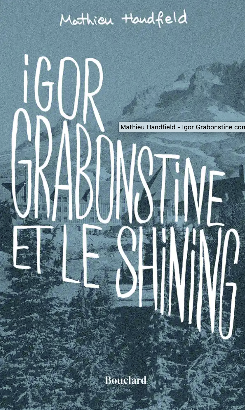 « Un petit éditeur mais un gros coup de cœur pour ce roman drôle, fou et déjanté qui nous plonge dans le tournage du film de Kubrick. » Pilier de l’horreur, le film Shining a effrayé des générations de spectateurs. Ici, le récit uchronique Igor Grabonstine et le Shining, signé Mathieu Handfield (Éd. Bouclard), est totatalement barré. Jack Nicholson est remplacé par Igor Grabonstine, un monstre sacré du cinéma mais aussi un homme exécrable, devenu fou de jalousie face au talent indéniable du petit Danny Lloyd. Au fil des pages, on croise également Stanley Kubrick et un Stephen King un peu alcoolique, vissé au bar du mythique hôtel Timberline Lodge, désespéré que le film dépasse son livre.
