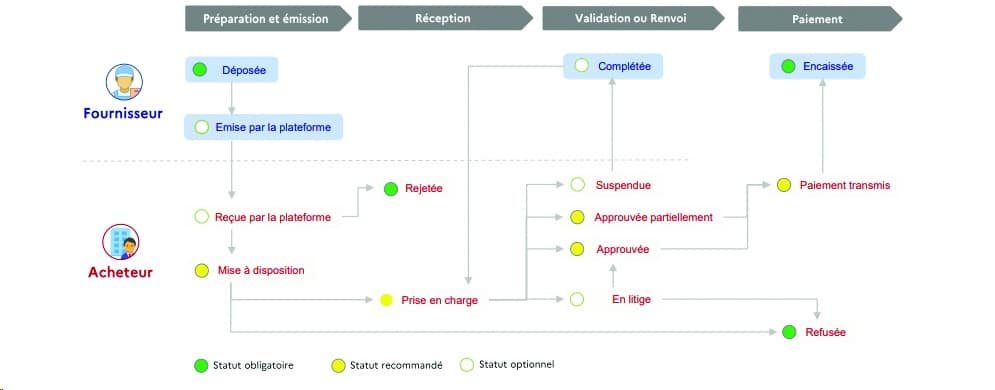 Le PPF est gratuit, mais il ne fonctionne que pour des échanges entre des entreprises basées en France et ses fonctionnalités sont limitées. Les PDP sont proposées par des acteurs privés. Ces plateformes sont auditées par l’État puis immatriculés pour une durée de 3 ans (renouvelables). En réception ou en émission de facture, elles contrôlent la conformité et proposent un support lisible. Elles permettent de suivre pas à pas le statut d’une facture. Les PDP proposeront également de nombreux services additionnels comme la connexion avec le logiciel de gestion de l’entreprise. La liste des PDP immatriculées est publiée sur le site impots.gouv.fr.