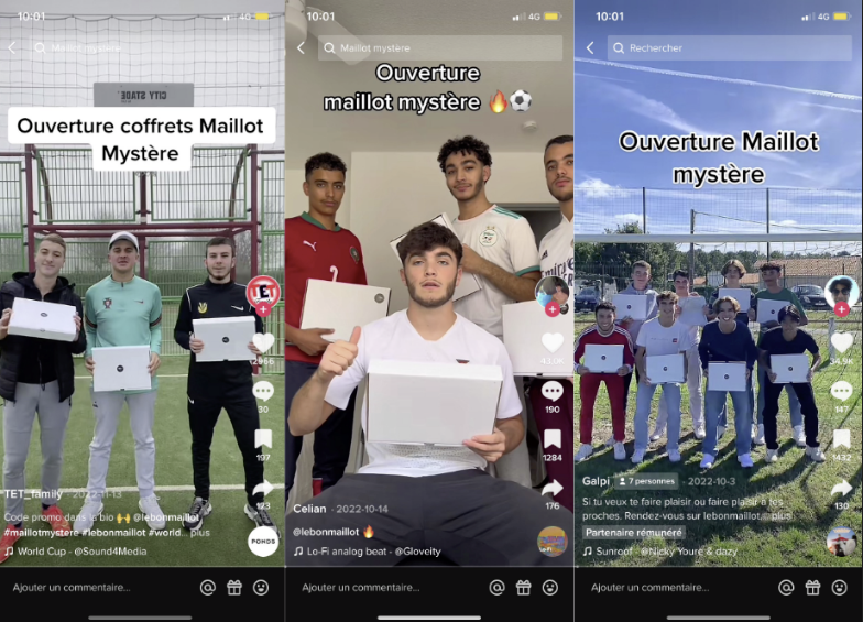 Pour fournir des maillots en tout genre, et de toutes les tailles, les deux fondateurs se concentrent sur trois axes d’approvisionnement : les marques et équipementiers, les clubs comme Séville, Wolverhampton, Reims, Metz, et tous les acteurs européens spécialisés dans la vente de produits de sport (boutiques physiques, sites e-commerce, marketplaces). Rapidement, cette idée a connu un véritable succès sur les réseaux sociaux. Le phénomène est notamment devenu viral sur TikTok. Certaines vidéos sont vues par… 6 millions de personnes ! « Les clients se mettent eux-mêmes en scène et se filment suivant un format codé. D’abord, ils rappellent le nom des équipes dont ils souhaitent ou pas recevoir la tunique, puis ouvrent leur box. »