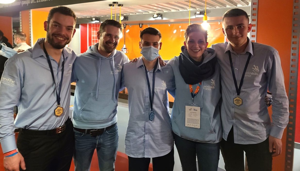 De gauche à droite Thierry Humbert, Thimothée Tritz (formateur), Gaël Schaeffer, Carole Frigelli (formatrice) et Nicolas Schwing. Photo DR/UIMMLes 46e Olympiades des métiers se sont achevées le 15 janvier dernier à Lyon. Deux Mosellans issus du pôle formation de l’UIMM basé à Yutz se sont qualifiés pour la compétition internationale à Shanghai.