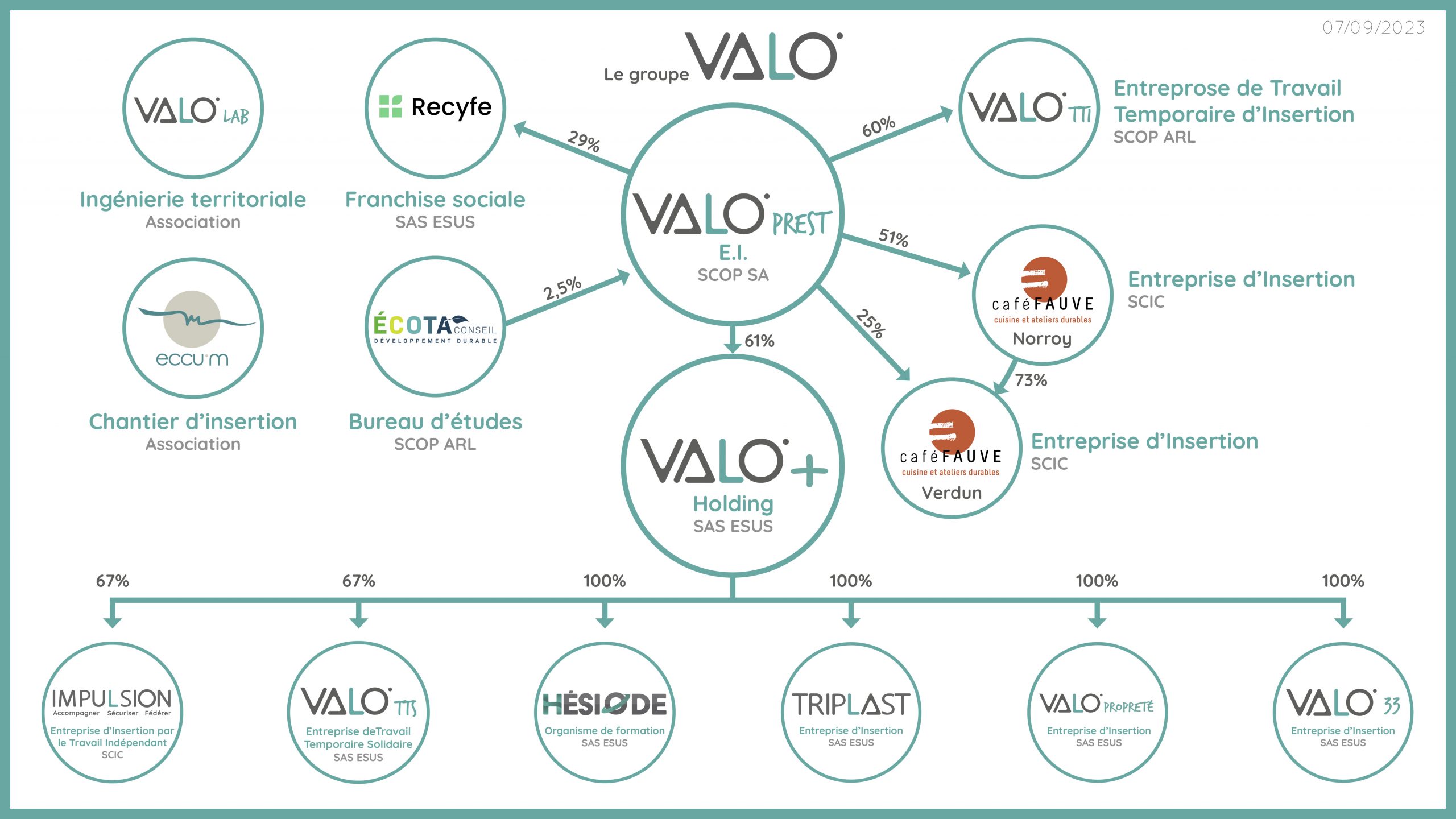 Depuis le siège n’a pas bougé – toujours dans la zone industrielle de Florange – mais l’entreprise a bien évolué. Première transformation, la voici devenu un groupe qui regroupe Valo’ Prest, la maison mère mais aussi le bureau d’études ECOTAconseil et bien d’autres sociétés et associations. « Nous comptons désormais 14 structures et près de 420 salariés sur cinq métiers principaux », développe son président. Spécialisé dans le domaine de l’inclusion, le groupe embauche des personnes éloignées de l’emploi, les forme et les accompagne afin de les réorienter vers un emploi stable et durable. Un sas qui vise à leur « donner accès à l’estime de soi, à leur destinée, à leurs envies ». Les contrats peuvent s’étendre jusqu’à deux ans. « Nos salariés passent en moyenne 14 mois dans le groupe et disposent d’un parcours adapté en fonction de leurs goûts », précise toutefois Philippe Lerouvillois. Il est vrai que la société dispose d’un panel important de services dans l’économie circulaire, la restauration (café fauve), la propreté, la conciergerie, l’ingénierie. En parallèle, il participe à différents projets précurseurs émanant sur le territoire et développe des boîtes d’intérim en direction des personnes éloignées de l’emploi.