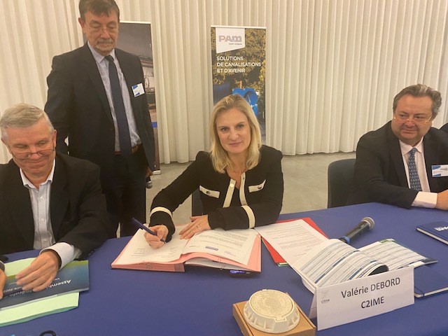 Valérie Debord, présidente du C2IME, a signé la convention de partenariat vendredi 18 novembre à Pont-à-Mousson. Photo DRUne convention de partenariat a été signée entre la société mussipontaine, spécialisée dans la fabrication de canalisations en fonte ductile, et l’accélérateur de projets de la Région Grand Est, le C2IME, afin d’assurer la pérennité de ce fleuron de l’industrie lorraine.