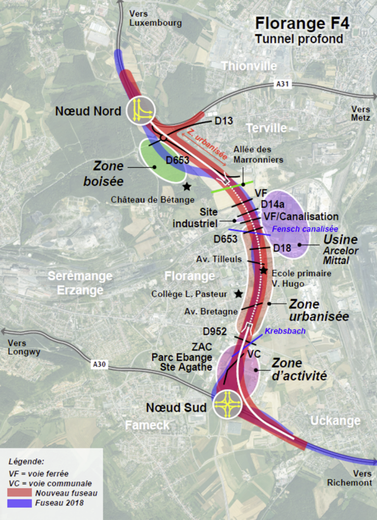 Le tronçon F4 qui viendra contourner Thionville et prendra la forme d’un tunnel profond traversant Florange.