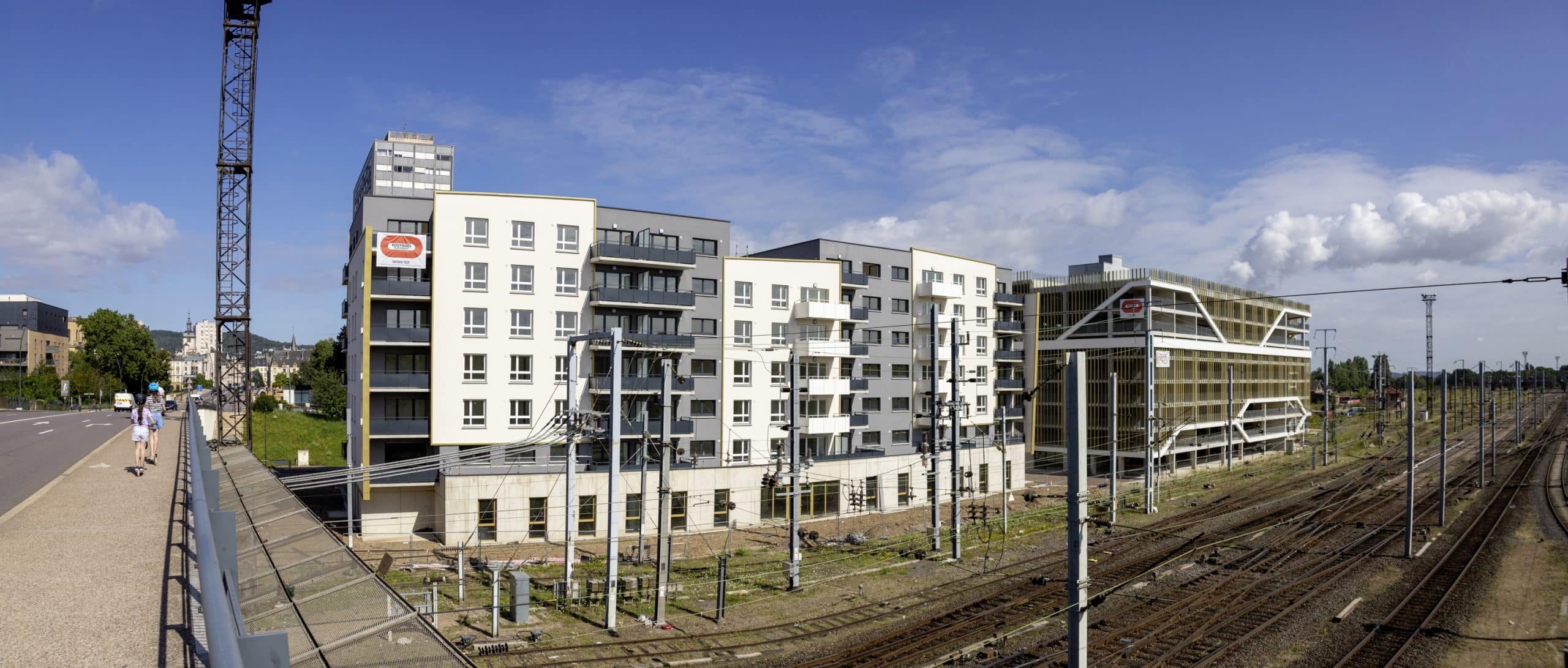 Quand on pense Rive droite à Thionville, on voit la gare puis l’Européen. Des monuments qui sont déjà rejoints par d’autres. La Passerelle de l’Europe a marqué le point de départ de ce renouveau. Et aujourd’hui, un parking Silos de 21 mètres de hauteur sur 80 mètres de longueur a vu le jour créant dans le même temps 721 places de stationnements. Pas banal quand on connaît les difficultés à se garer sur ce secteur. Un projet qui s’est esquissé pour répondre aux besoins de demain, les projections ferroviaires annonçant d’ici quelques années un doublement du nombre de voyageurs en gare de Thionville. Or des besoins, il y en a aussi en offre de logement. C’est pourquoi, une autre bâtisse a poussé proposant environ 79 appartements (dont 35 à vocation sociale) gérés par les bailleurs ICF Habitat Nord-Est et CDC Habitat, et une surface de 1 100 m2 réservée à l’installation de bureaux. La Maison de la Région doit quitter le centre-ville pour s’y installer. Pierre Cuny veut faire de la Rive droite, un néoquartier marquant le modernisme du Thionville du XXIe siècle.