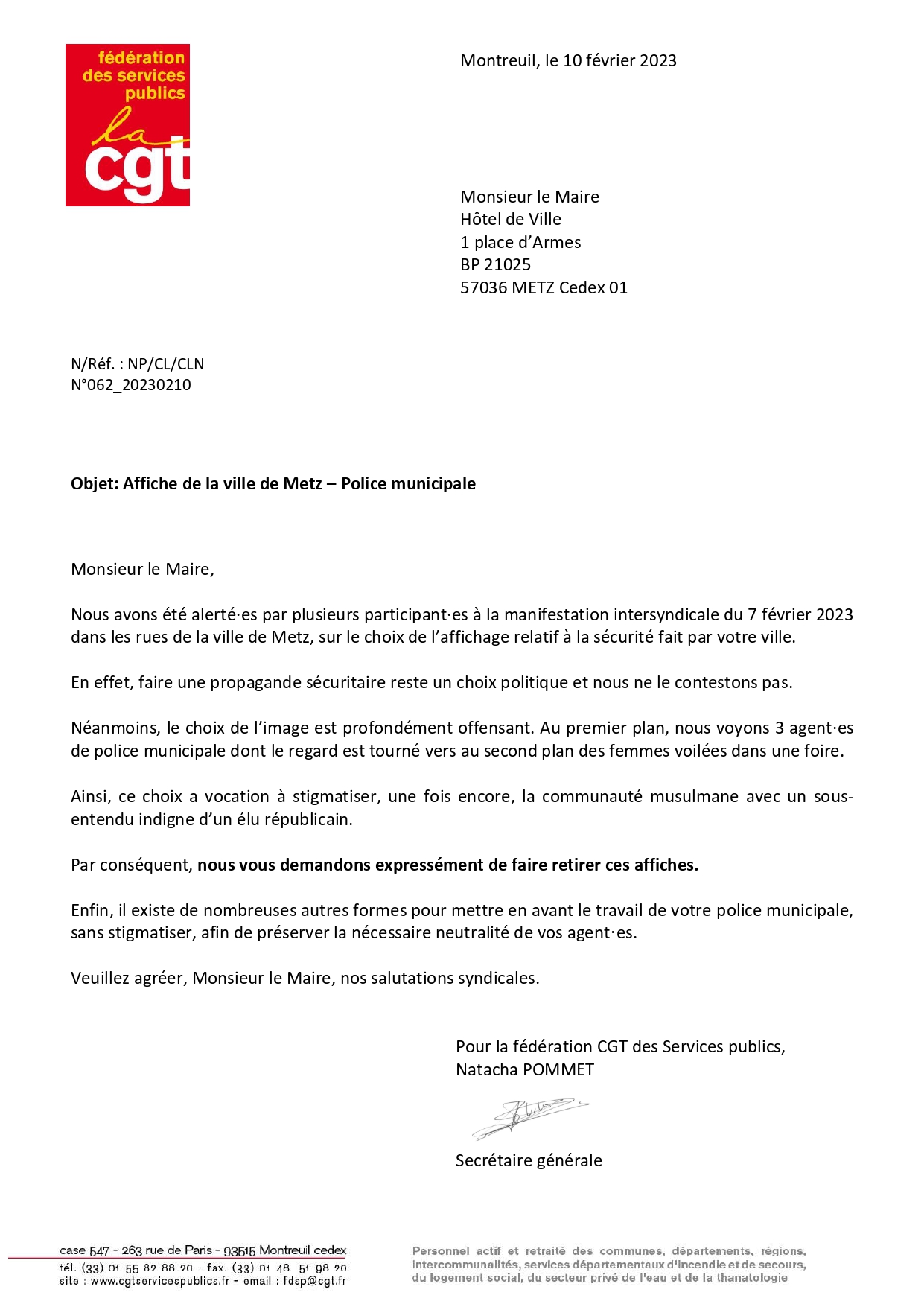 Même tonalité du côté de la fédération de Moselle du Parti communiste français (PCF) qui dans un communiqué du 15 février juge que « ce choix, qui n’est pas le fait du hasard, est discriminatoire et donc inacceptable qui plus est de la part d’un élu de la République ». Le PCF, qui pointe une « stigmatisation de la population musulmane » demande lui aussi le retrait des affiches.