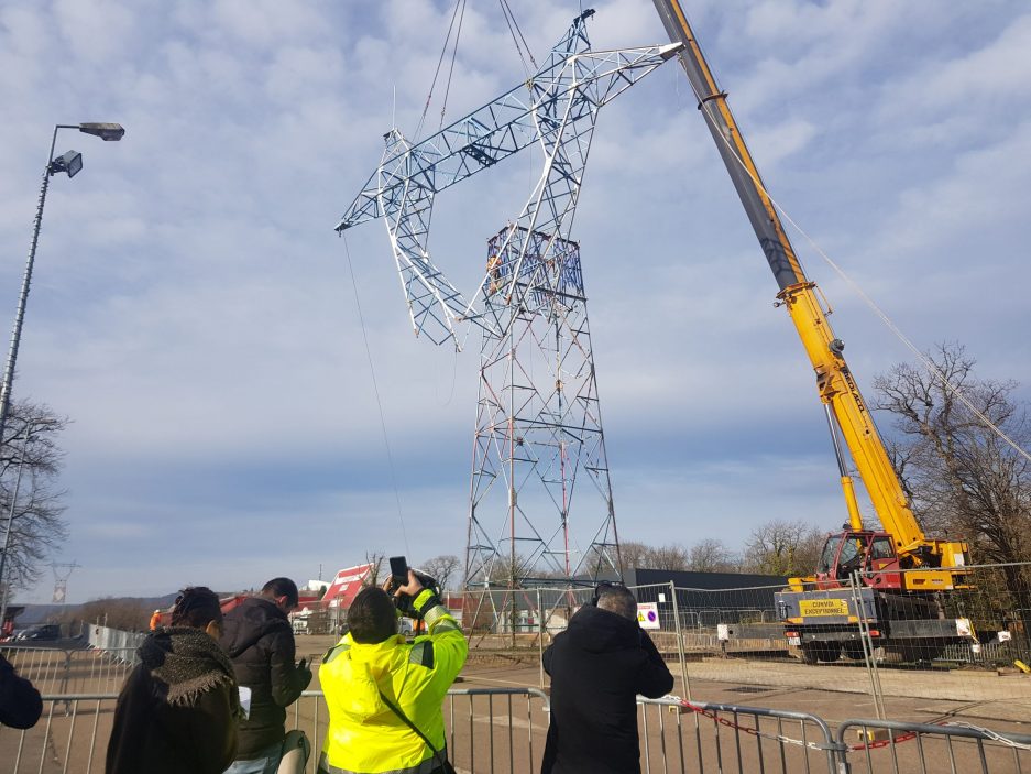 Ce mardi 1er mars a eu lieu la dépose du premier pylône de la ligne haute tension sur le périmètre de la Cité des Loisirs. Son effacement permettra l’accueil de nouveaux services sur le site touristique, qui se pense désormais comme un lieu de vie à part entière. C’est un acte lourd de symboles, qui marque l’avènement d’une nouvelle ère pour le premier pôle de loisirs du Grand Est. Si pendant longtemps les pylônes de la ligne haute tension Amnéville-Montois (36 au total dont 5 sur la Cité des Loisirs) ont fait partie intégrante du paysage, cette image appartiendra bientôt au passé puisque ce mardi 1er mars a eu lieu la dépose de l’un d’entre eux. Les quatre autres devraient être entièrement démontés dans une dizaine de jours. Une opération chiffrée à 4,4 millions d’euros, financée à 60 % par la société publique locale Destination Amnéville, chargée de reprendre en main le site, et à 40 % par RTE, responsable du réseau. En remplacement, une liaison souterraine d’environ un kilomètre a été créée en novembre dernier et raccordée à une ancienne ligne dont l’utilisation avait été suspendue. Une avancée dont se réjouit le maire de la commune et président du conseil d’administration de la SPL, Éric Munier, la présence de cette ligne haute tension empêchant la réalisation de nombreux travaux. « Trois ans d’efforts et des investissements financiers conséquents. Aujourd’hui, enfin, cette infrastructure disparaît, donnant un nouveau visage au site », a commenté avec enthousiasme l’élu.
