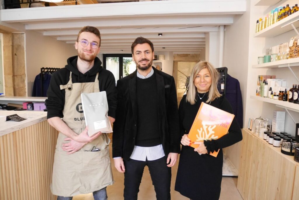 Bluën café-boutique éthique, Simon Kiffer, Chaouki Laouani et Catherine Giulianelli. Photo DRC’est un concept unique à Nancy qui vient d’ouvrir ses portes en ville-vieille. À la fois salon de thé, épicerie fine, boutique de déco et de vêtements, ce tout-en-un à l’ambiance calme et lumineuse s’adresse à une clientèle en recherche d’insolite et de nouveautés.