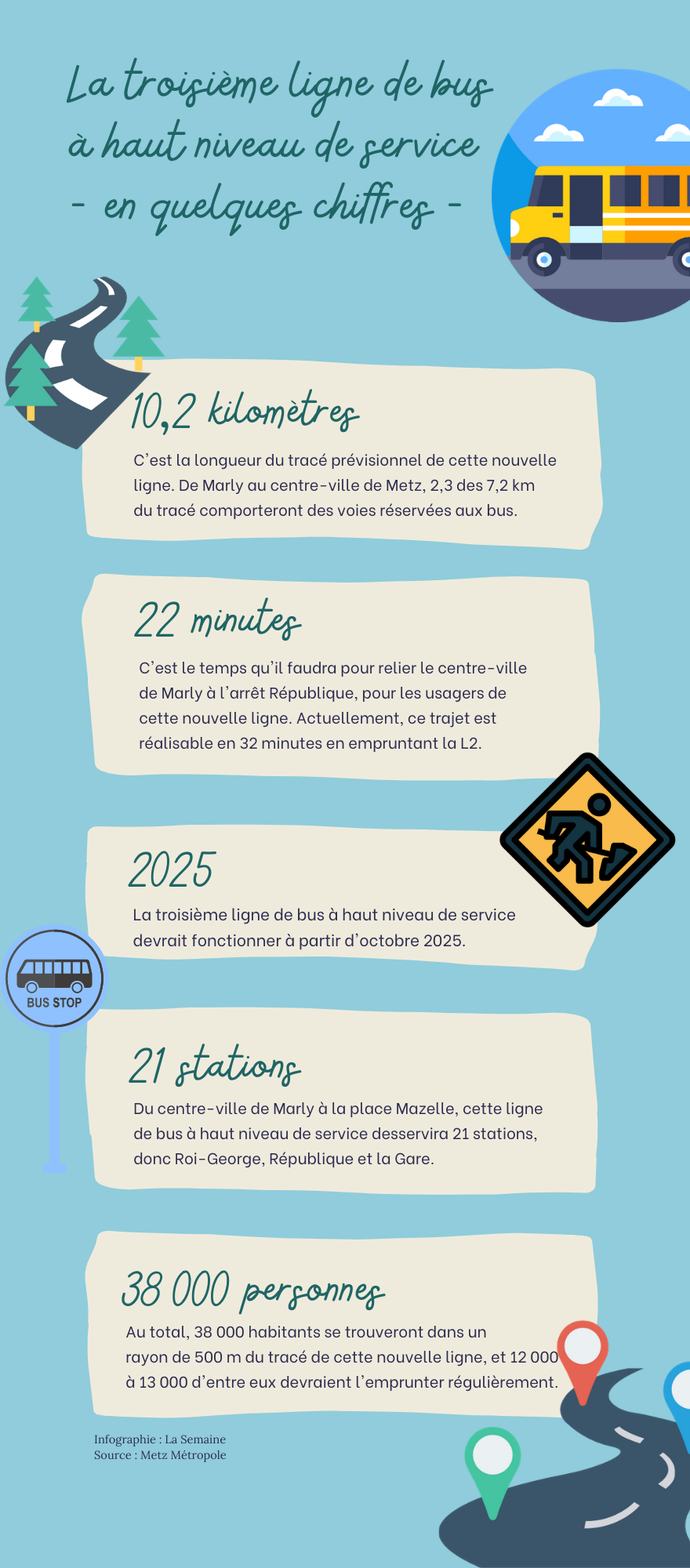 Dans cette version du projet, la troisième ligne de bus à haut niveau de service permettra aux habitants de Marly de rejoindre République en 22 minutes, montre en main, contre les 32 minutes actuellement nécessaires en empruntant la ligne 2. « La L2 aura donc vocation à disparaître », a révélé Béatrice Agamennone, vice-présidente de Metz Métropole déléguée à la mobilité et aux transports. Plus largement, l’ensemble du réseau Le Met’ fera peau neuve, puisqu’en complément de l’arrivée du « petit frère du Mettis », le tracé des lignes Lianes et Citéis sera optimisé. « Nous pensons notamment à améliorer la desserte du quartier Bellecroix, mais également prolonger la ligne A du Mettis, afin de desservir l’hôpital Robert Schuman », poursuit Béatrice Agamennone.