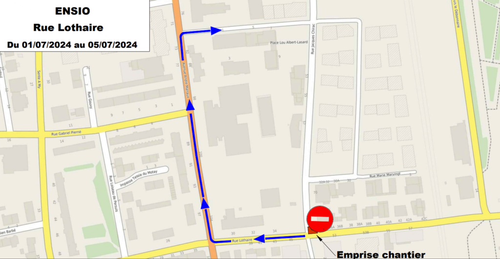Depuis ce lundi 1er juillet, la Ville de Metz a entrepris le lancement de plusieurs chantiers distincts. Entretien de voirie, du réseau de chaleur, déploiement de la vidéoprotection… On fait le point, quartier par quartier, sur la durée des chantiers en cours.  L’été ne sera pas synonyme de vacances pour tout le monde. La Ville de Metz profite de la période estivale pour lancer un important programme de travaux à différents quartiers de la commune. Depuis ce lundi 1er juillet 2024, des travaux sont notamment mis en place au niveau de la rue Lothaire. Ils ont pour but d’étendre le réseau Télécom. Ils doivent durer jusqu’au 5 juillet (sous réserve des aléas techniques et climatiques). « En conséquence, l’accès à la rue Jacques Chirac par la rue Lothaire sera fermé à la circulation durant toute la durée du chantier et une déviation sera mise en place »