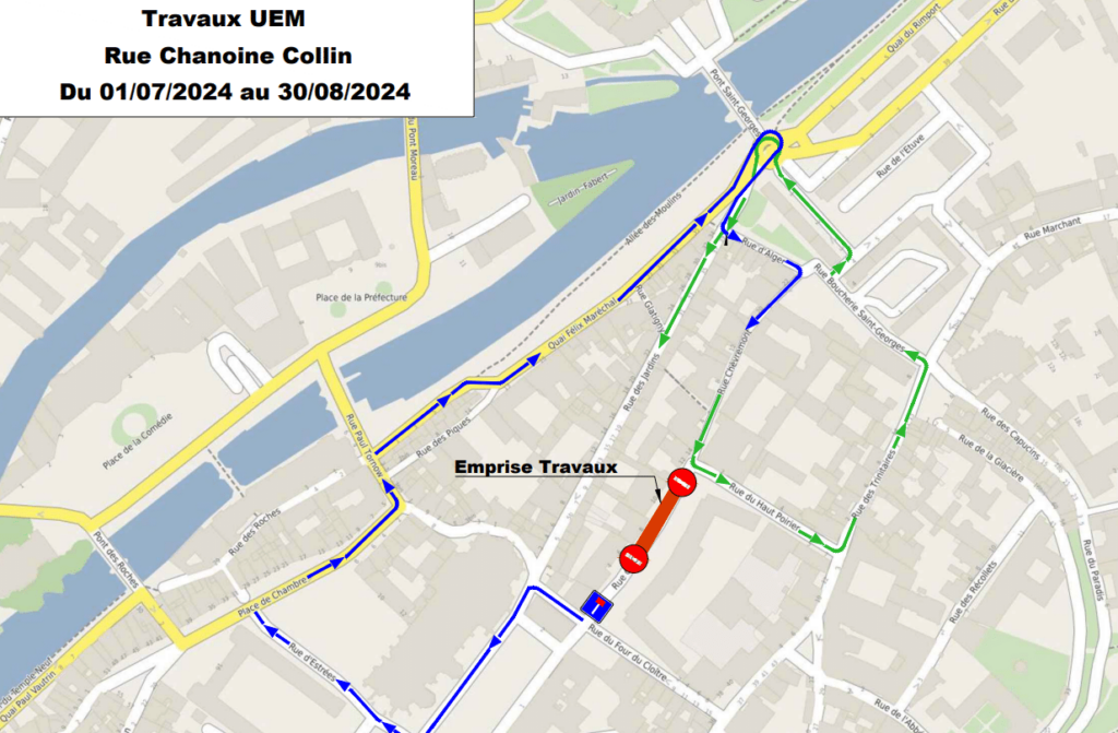 Rue du Chanoine Collin sera interdite à la circulation durant toute la durée du chantier, une déviation sera mise en place et les arrêts de bus seront modifiés.