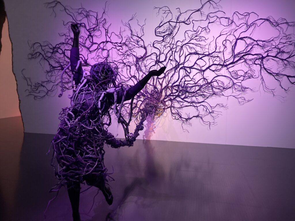 Pousser les portes du possible, c’est aussi se rendre compte que « l’imaginaire est un outil, non pas une échappatoire ». À la manière de collectifs jeunes comme Zanzibar ou du mouvement du « solar punk », qui encourage une vision optimiste de l’avenir, auteurs et artistes s’inscrivent dans un élan de réappropriation des futurs. Le message est clair : pour dire stop aux dystopies, les sociétés actuelles ont besoin de nouvelles perspectives. « Si on se vautre encore dans les fins du monde, on va bien finir par les faire advenir », appuie Alexandra Müller. Une idée déroulée aussi bien sur le fond que dans la forme. Au fil de la visite, la scénographie classique se déstructure. Fissures, trouées et miroirs viennent perturber les sens du public et annoncer la fin d’un monde, et non du monde. Aux yeux de la commissaire, la science-fiction nous parle avant tout du présent et des risques qui nous guettent. « C’est presque comme une mythologie. Les artistes et auteurs reviennent tous sur nos manques et les traduisent à travers des métaphores. C’est aussi ça la raison pour laquelle la SF parle à tout le monde. »