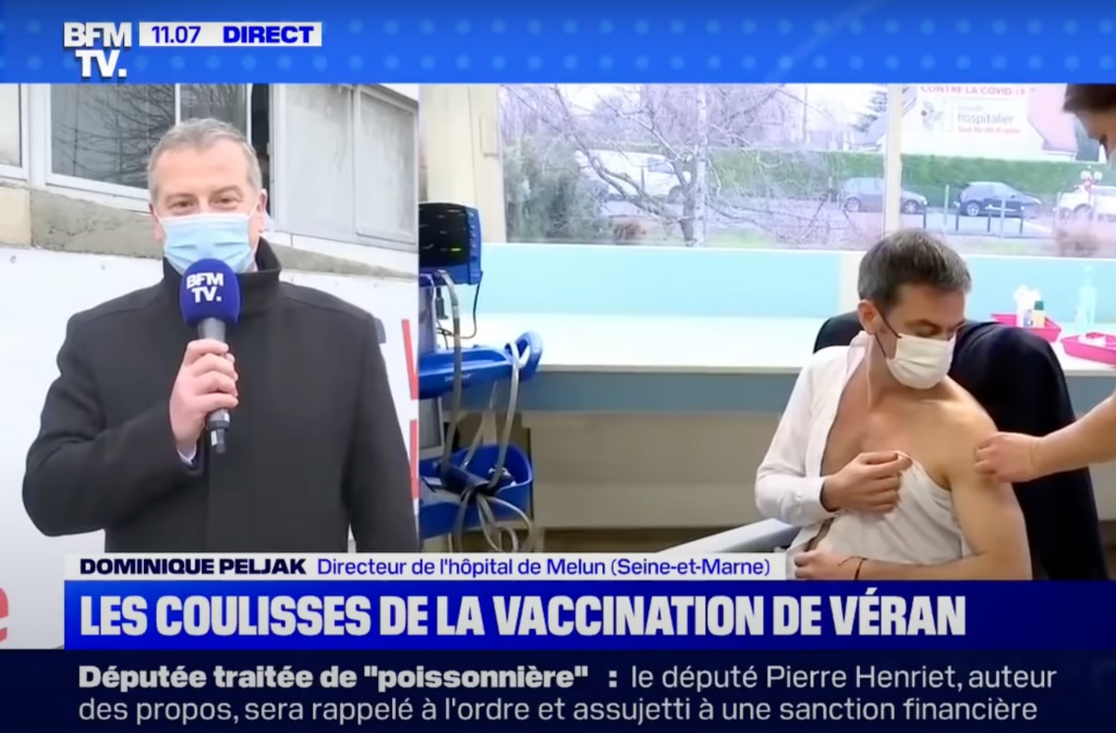 Dominique Peljak en direct sur BFM TV en février 2021, juste après la vaccination d’Olivier Véran. Capture d’écran YouTube
