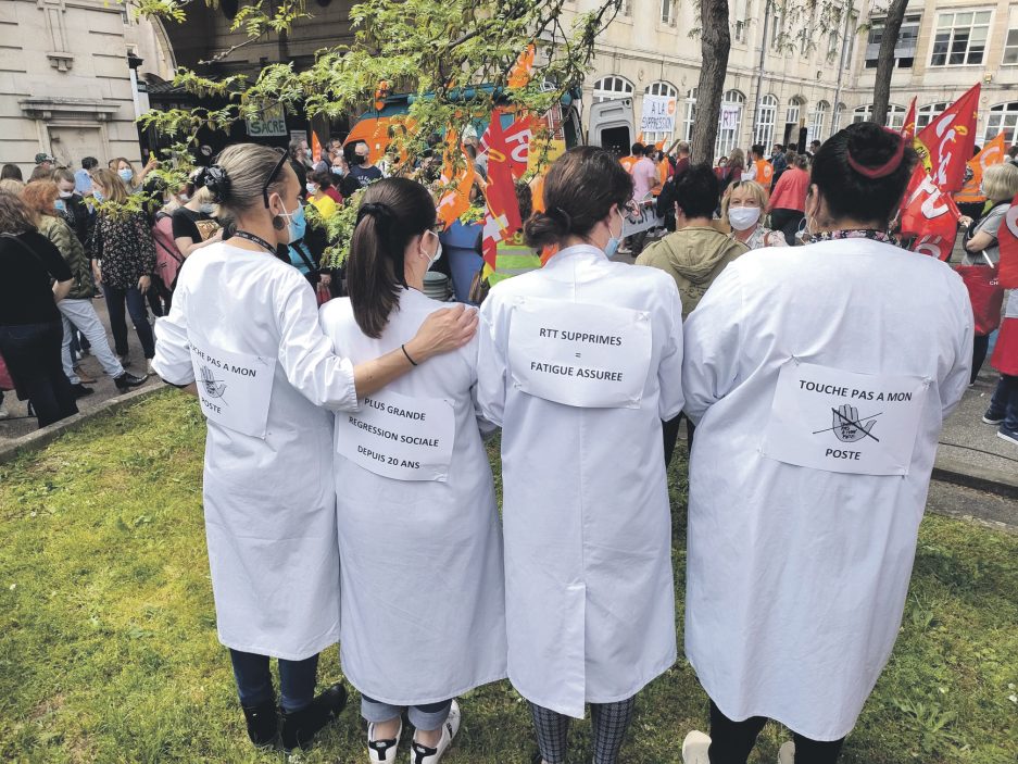 « S’attaquer aux RTT, c’est mener une politique pernicieuse », s’exclament les protestataires qui montrent les failles d’une stratégie appuyée d’un côté sur le maintien des postes de soins grâce au glissement d’administratifs et de l’autre sur la remise en cause d’acquis sociaux. Commentaires catastrophistes contre discours mettant en avant des réorganisations et des options en cours de discussion : dans cet hôpital en pointe dans le traitement de plusieurs pathologies, qui coordonne plusieurs études internationales, fait de la recherche, les tensions deviennent palpables. Quant aux doutes sur les véritables intentions de l’État concernant la réduction des effectifs, ils s’amplifient sérieusement dans la sphère syndicale. Là où il faudrait de la sérénité il y a des soupçons et de la grogne. « Que reste-t-il des belles paroles ? », s’interroge Ophélie Opfermann la déléguée CFDT, souvent adepte du dialogue et cette fois la première à monter sur la barricade.