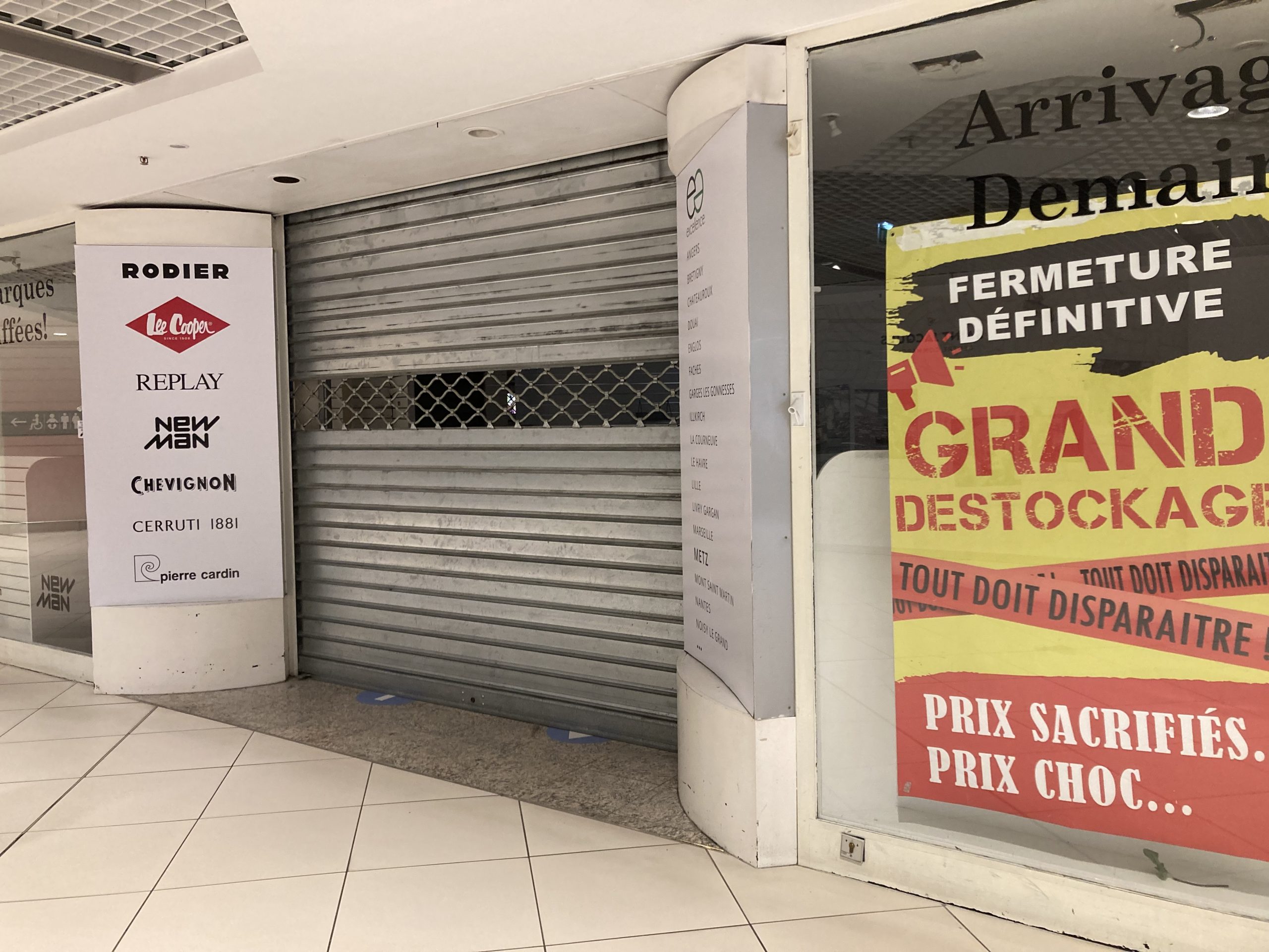L’enseigne de prêt-à-porter spécialisée dans la vente de produits de marques dégriffés a baissé le rideau au centre Saint-Jacques après une opération de déstockage massif. « Fermé définitivement », peut-on lire sur une affiche collée sur la vitrine.