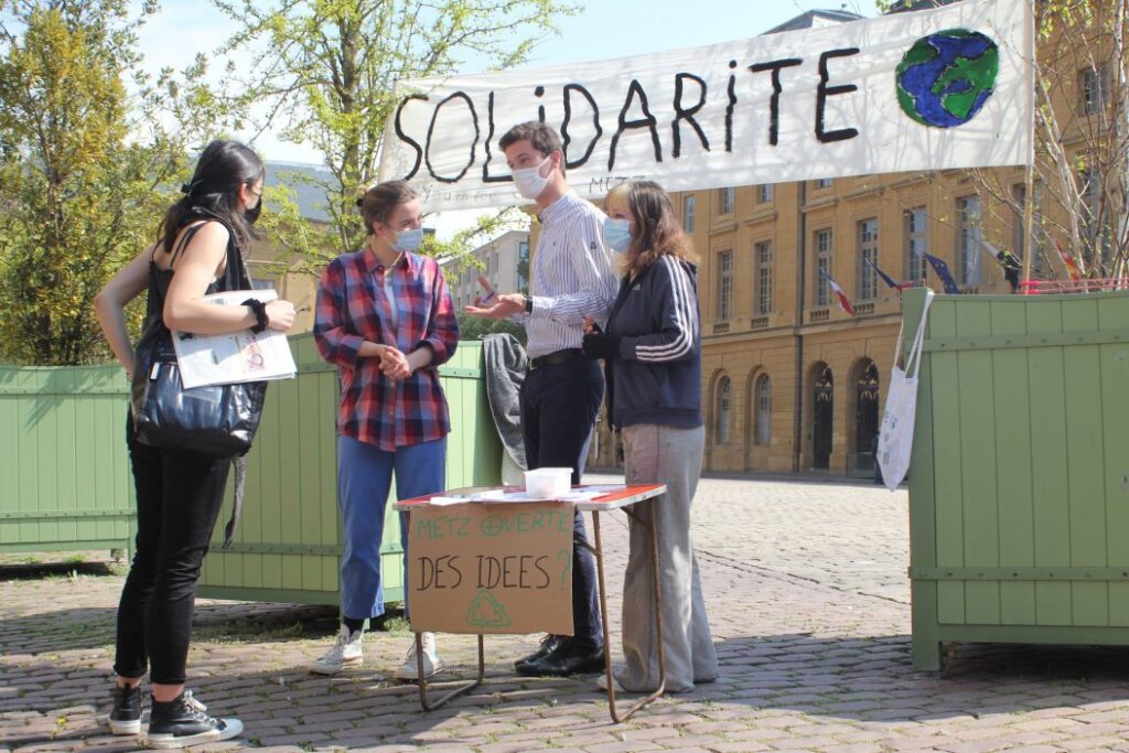 Tout au long de la semaine, les jeunes du groupe Youth for Climate Metz occupent les rues de la ville afin d’échanger avec les citoyens messins sur leurs idées de projets écologiques.