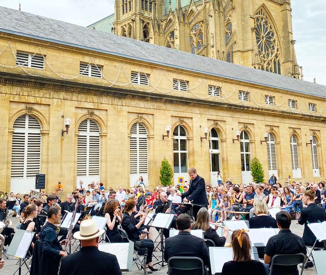 L’orchestre de l’Harmonie municipale de Metz prendra possession de différents lieux de la ville afin de proposer des concerts gratuits en extérieur, du 26 mai au 27 août. Les « Concerts sur places » sont de retour. Du 26 mai au 27 août, différents sites de la ville de Metz se transformeront en scènes à ciel ouvert. L’événement est orchestré par Arnaud Tutin et l’Harmonie municipale, l’une des plus anciennes formations orchestrales de France composée de plus de 50 instrumentistes. L’occasion est donnée, une nouvelle fois, de vivre des moments musicaux insolites en extérieur dans différents endroits remarquables de la ville, tels que le jardin botanique, la cour du marché couvert ou encore le parvis de l’église Saint-Clément. Le lancement de ces concerts gratuits est prévu vendredi 26 mai à 20h30, dans la cour de l’école Le Graouilly, au Sablon. Le programme complet est disponible en ligne. Thomas Boucher