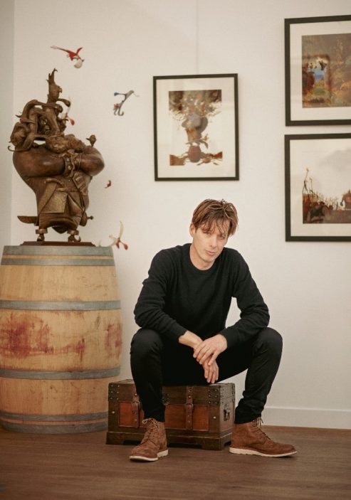 Cette table, il y revient plus tard. Une fois le travail de recherche finalisé pour égayer le dessin avec « la mise en couleur ». Cette fois, tout est différent. Il ne veut plus la quitter, peut laisser les heures s’écouler sans broncher car dessiner n’a rien d’une contrainte. « J’y suis très bien et tout à fait à ma place. » Les peintures acryliques se mêlent alors pour donner vie à des univers rocambolesques et épiques.