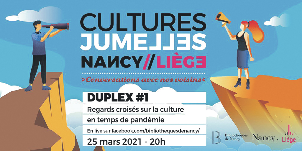Nancy et Liège, ville jumelée en Belgique, proposent à leurs habitants des regards croisés sur la culture en temps de pandémie dans le cadre d’un duplex organisé le jeudi 25 mars à 20h en live sur la page Facebook des Bibliothèques de Nancy. Une première initiative venant lancer une série de rendez-vous tout au long de l’année.