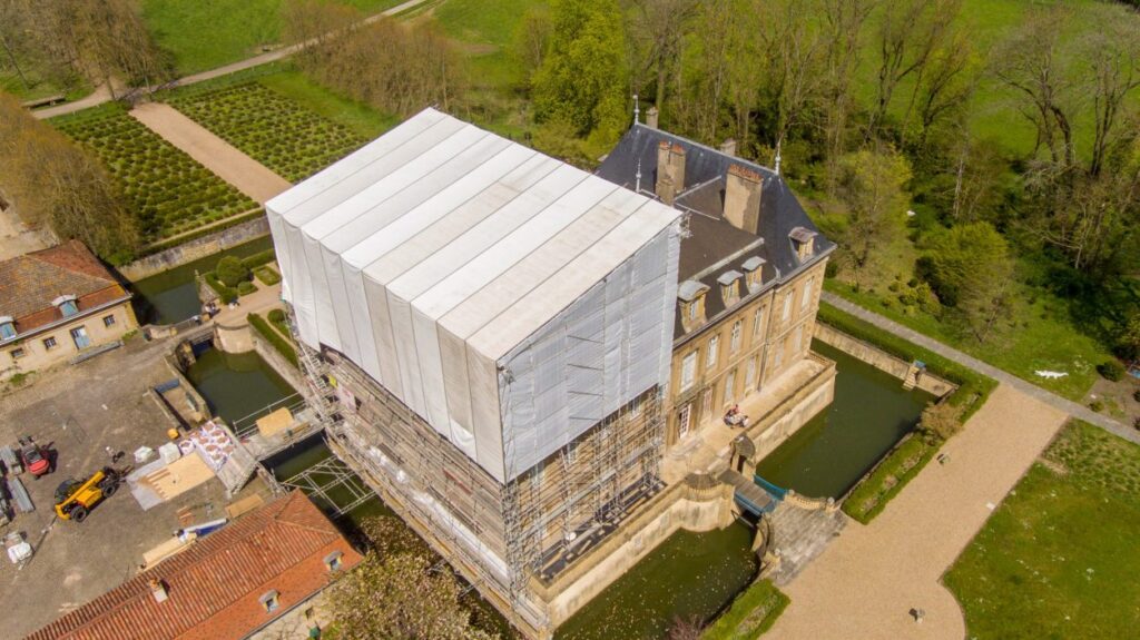 L'édifice du XVIIIe siècle est en travaux depuis le printemps à Manom. Ses 100 fenêtres doivent être changées, la façade, la charpente et la toiture restaurées. Un chantier ambitieux et complexe qui durera jusqu'en 2023.
