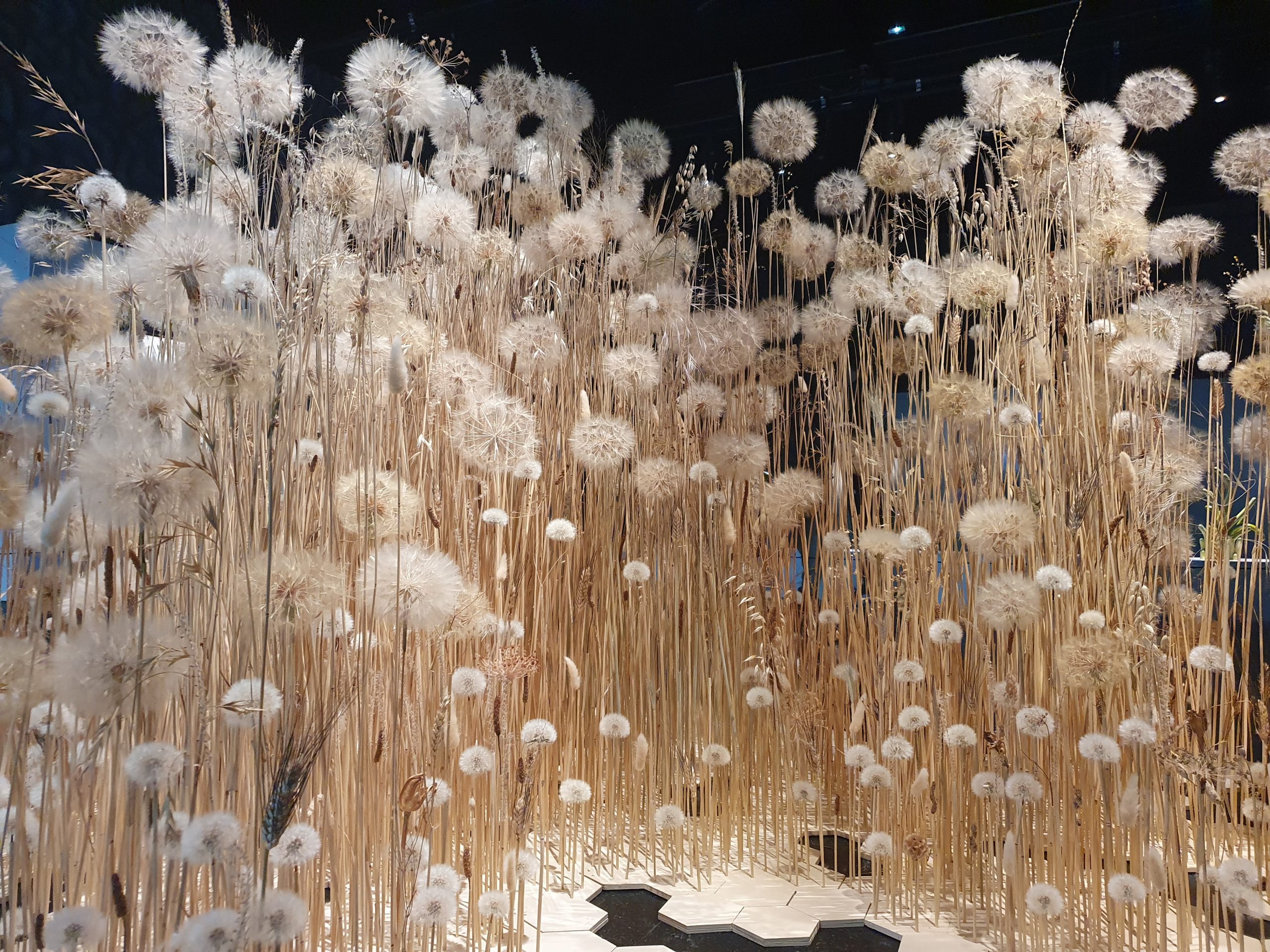 Mais l’exposition Végétal, c’est encore bien des choses. Une grande tapisserie murale qui, à la manière d’un lierre, vient grignoter tout un pan de murs, des mauvaises herbes qui, une fois mises en peinture, se subliment ou encore une œuvre d’art numérique interactive sur laquelle on peut se permettre de souffler, comme on le ferait sur un pissenlit fané, la tige glissée entre nos doigts, laissant ses petites aigrettes blanchâtres se dissiper dans le paysage. Alors, après avoir vécu tout cela, peut-être que la fleur de pissenlit vous apparaîtra plus belle que vous ne l’imaginiez jusque-là.