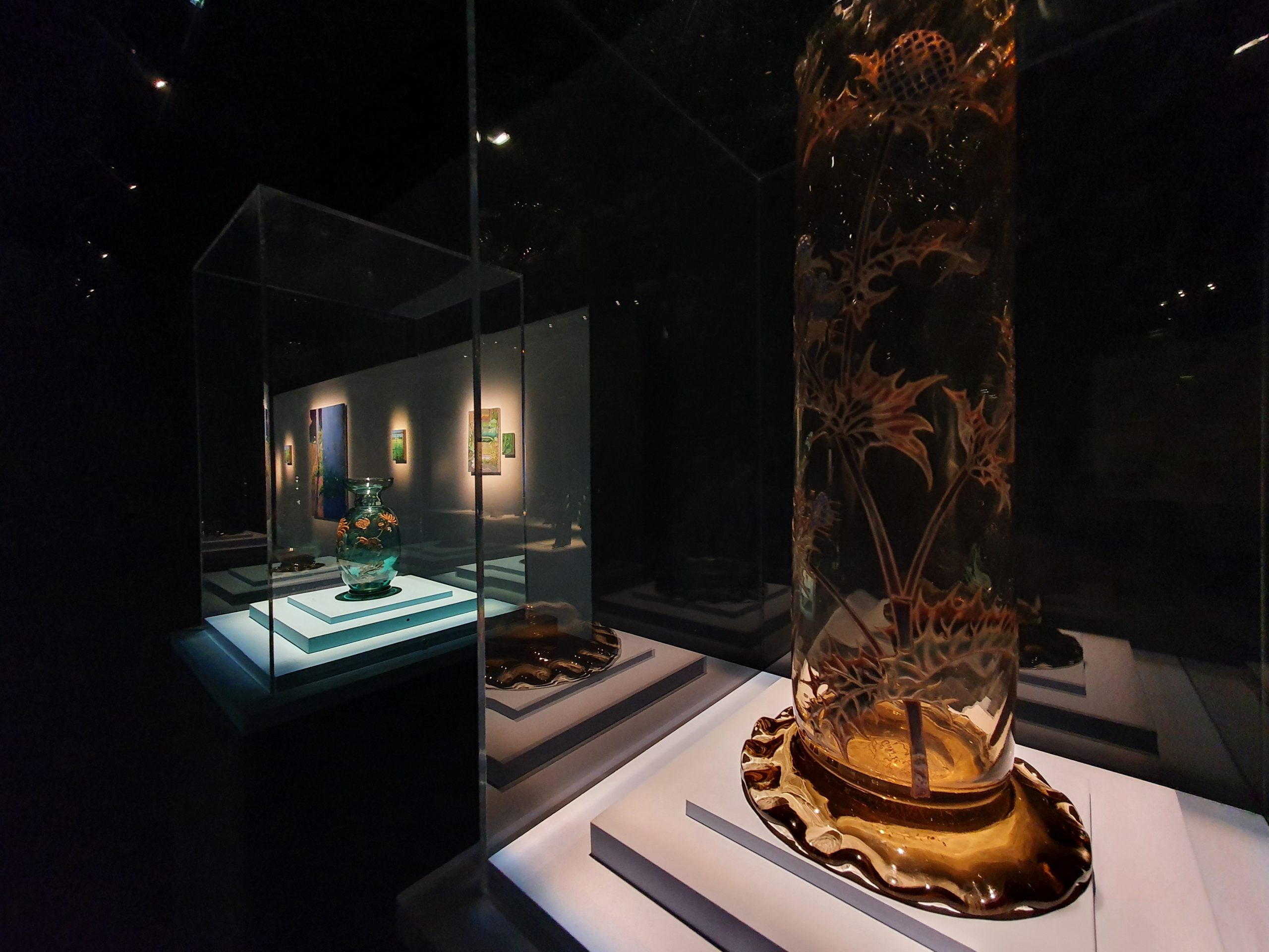 Un autre nom résonne à nos oreilles. Émile Gallé, naturellement. À la fois artiste et botaniste, il aurait été difficile de s’en passer pour cette exposition. Son travail est mis en avant à travers deux prêts du Musée du verre et du cristal de Meisenthal. Deux vases en verre embellis par des végétaux : le petit vase aux chrysanthèmes ainsi que le grand vase rouleau aux chardons. Le symbole de la Lorraine. Un travail tout en finesse qui ne cesse de s’apprécier.