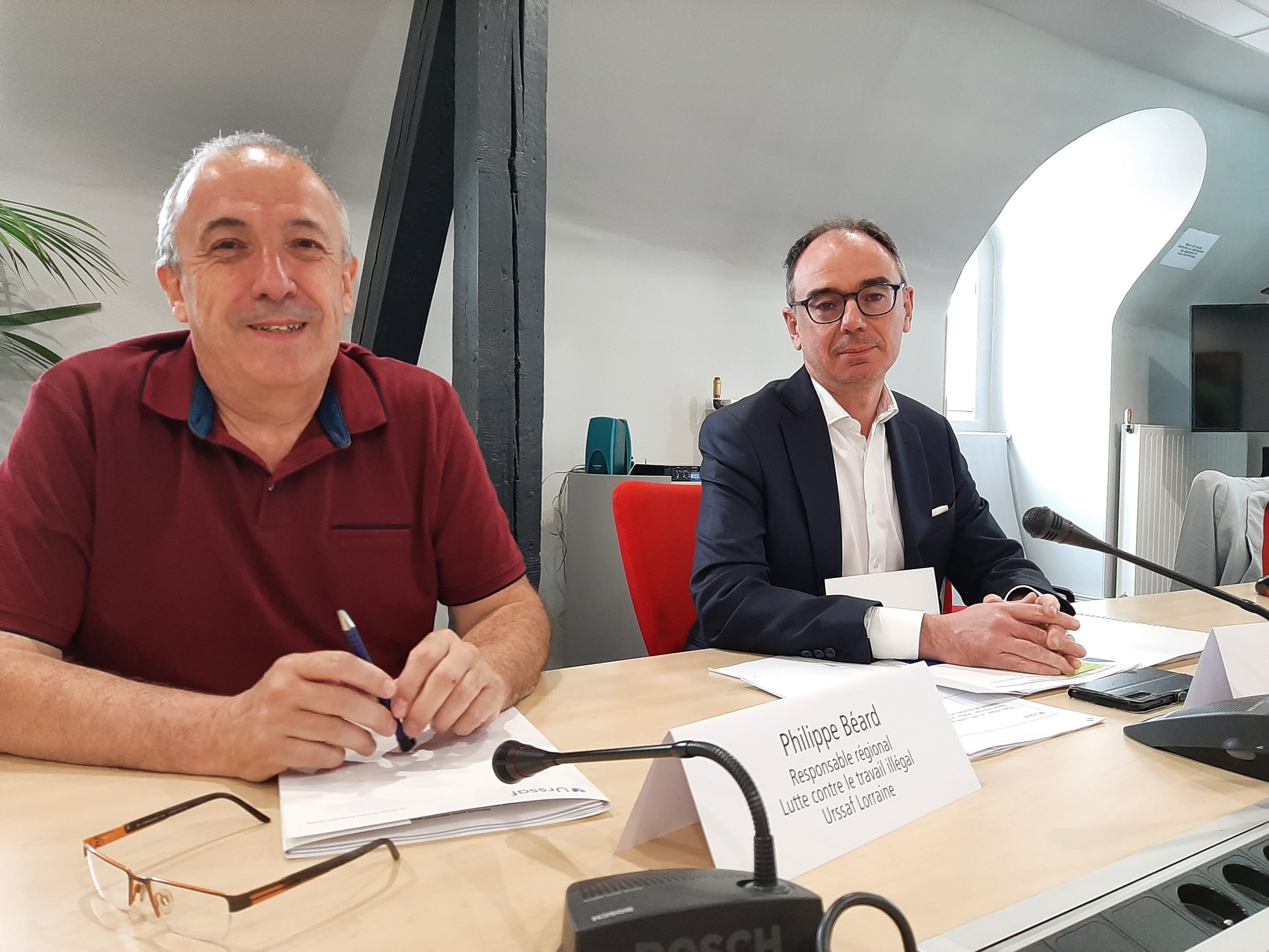 Philippe Béard, responsable régional de la lutte contre le travail illégal de l’Urssaf Lorraine et Christophe Franceschi, directeur de l’Urssaf Lorraine (de g. à d.). Photo La SemaineL’Urssaf Lorraine accentue sa « chasse » aux entreprises qui s’adonnent au travail dissimulé. Les travailleurs indépendants, les auto-entrepreneurs ainsi que les entreprises qui profiteraient de la proximité du Luxembourg pour opérer des montages juridiques « discutables », vont également être davantage surveillés et contrôlés.
