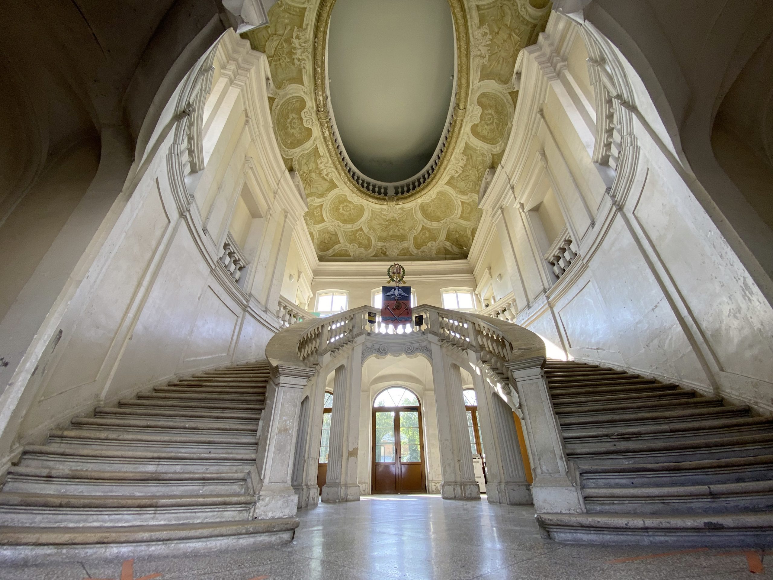 Vu de l’extérieur, le château fait bonne figure. Difficile d’imaginer le montant estimé des travaux, qui s’élèvent à plus de 10 millions d’euros. Un montant lié en partie à l’immensité du site. Un petit tour à l’étage – jadis occupé par les enseignants de l’école – permet de prendre la mesure du potentiel du site mais également de l’ampleur des travaux. Plus de 3 000 m2, des combles en enfilade et une surface de toiture sans équivalent dans cette zone. C’est justement au niveau de la toiture que les problèmes se posent. La couverture ainsi que les lucarnes laissent passer l’eau, qui abîme certains éléments de la charpente et les plafonds intérieurs. « Il y avait réellement péril en la demeure, rappelle le maire. Il fallait d’urgence stopper les infiltrations. Le risque associé de dégradation structurelle de l’ensemble est préoccupant. De plus, cela peut compromettre la conservation du plafond ovale peint, présent au cœur du château au-dessus de l’imposant escalier à courbe à double volée, élément remarquable et emblématique du château ». L’escalier d’honneur et son plafond seront donc au centre des rénovations, afin de préserver et de donner tout son lustre au travail de l’artiste italien Giacomo Barilli à qui l’on doit également les décors de l’opéra de Nancy.
