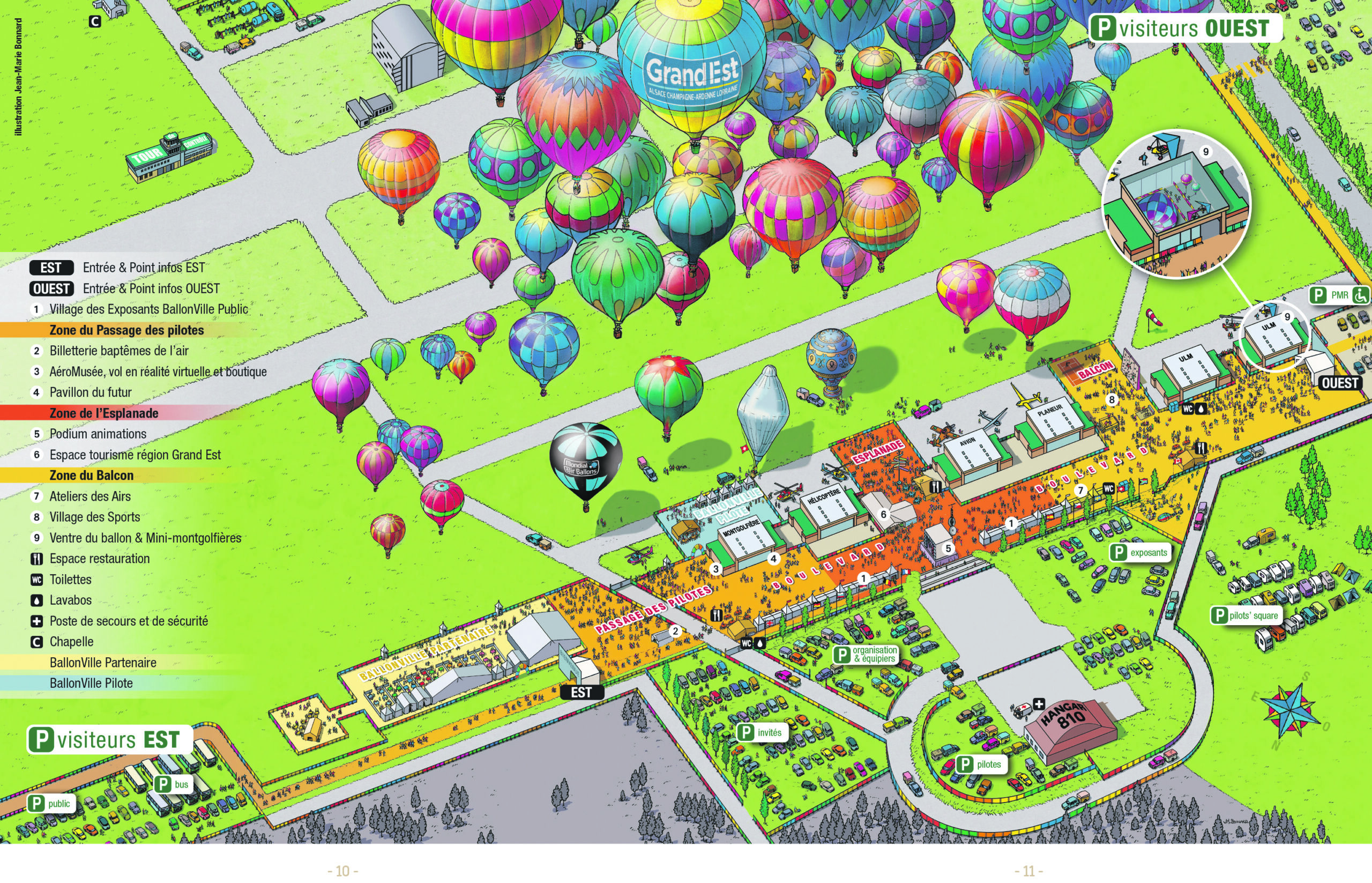 Le Gemab, qui nécessite 45 jours de montage et démontage, attire d’ordinaire 3 000 pilotes et membres d’équipage, 500 000 spectateurs, 40 000 invités, 200 partenaires et 400 journalistes sur les 240 heures de la manifestation ; cette année, le contexte pandémique – la nécessité notamment de présenter un pass sanitaire – pourrait agir sur sa fréquentation. Il n’en reste pas moins que les habitués, du 23 juillet au 1er août, retrouveront ce qui fait le succès et le charme du Grand Est Mondial Air Ballons : l’aire d’envol qui s’étend sur près de 3 000 mètres, une station propane « unique au monde », soulignent les organisateurs, avec 150 points de ravitaillement et, surtout, « BallonVille », découpée en 4 quartiers et dans laquelle un boulevard de 1 000 mètres accueille une ribambelle d’animations. 3 espaces permettent au public d’aller au plus près des montgolfières : le Passage des pilotes, le Balcon et l’Esplanade. Le budget total du Gemab est de 3 millions d’euros, pour des retombées économiques et médiatiques calculées à 30 millions d’euros.