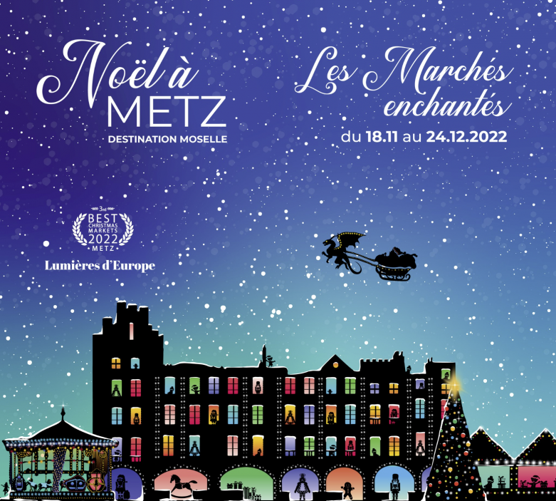 En toute intelligence (collective), marchés de Noël et Sentier des Lanternes ne font désormais plus qu’un et si le second nommé, confirmé square Boufflers, démarrera avec une semaine de décalage (26 novembre-30 décembre), c’est aussi à lui que Metz doit d’avoir obtenu la troisième place du concours des plus beaux marchés d’Europe, derrière Budapest et Bâle. La distinction trône en bonne place sur les visuels d’une élégante sobriété (l’air du temps !) proposés cette année, au même titre que les lumières, celles du Sentier des Lanternes comme celles dont Metz souhaite faire une signature. La crise énergétique obligera à tout couper à minuit en semaine et à 1 h les vendredis et samedis. Pas de quoi éteindre la magie jusqu’au 24 décembre.