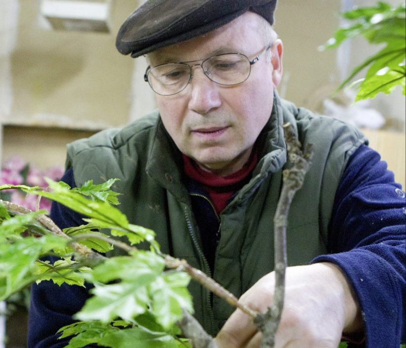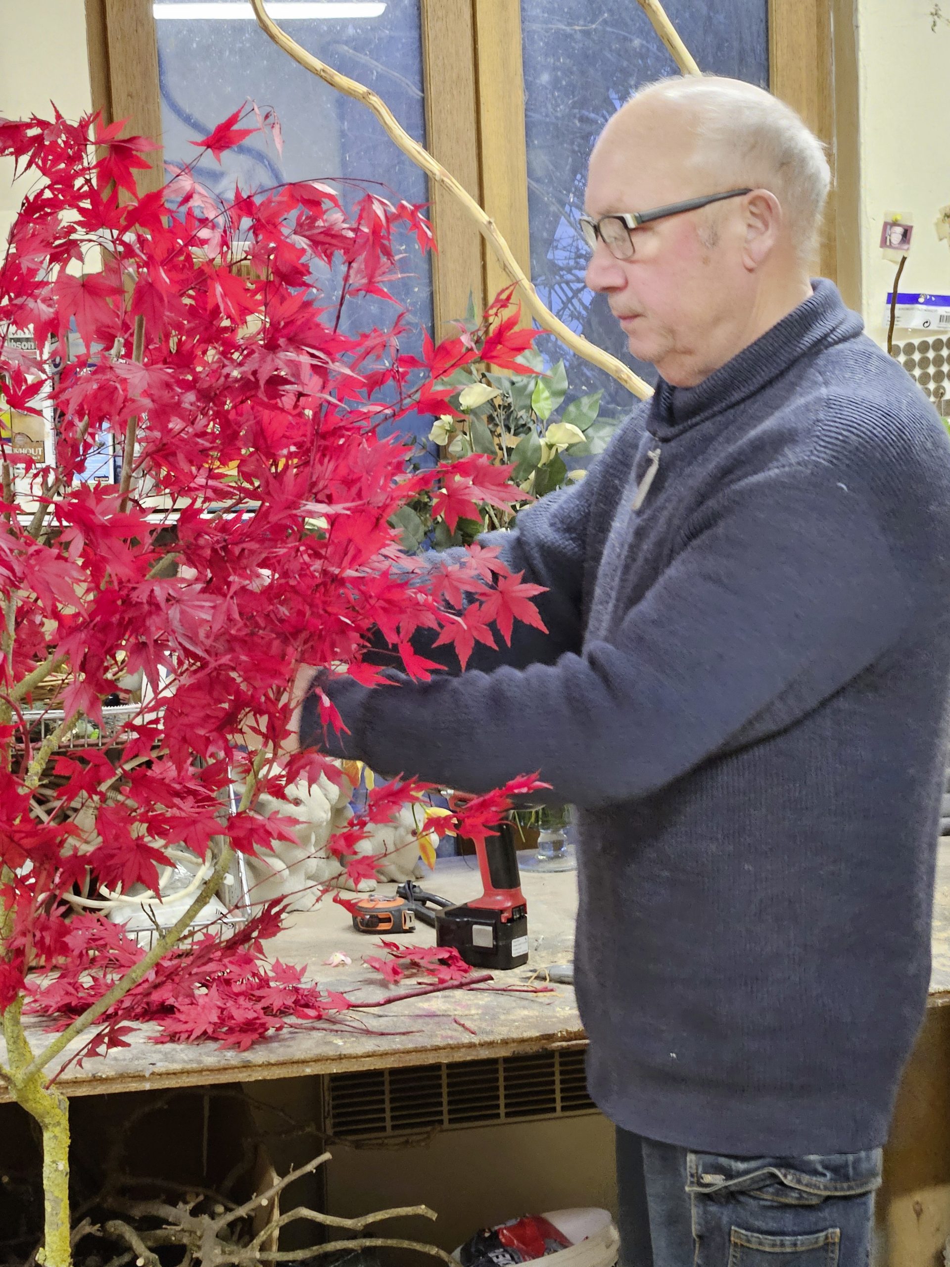 Le créateur d’arbres semi-artificiels est toujours actif et inspiré. Dans son atelier d’Allain, l’artisan officie toujours avec passion, minutie et talent. Attentif à la transmission de son savoir-faire, il forme deux personnes qui ne pouvaient pas rêver meilleur apprentissage.