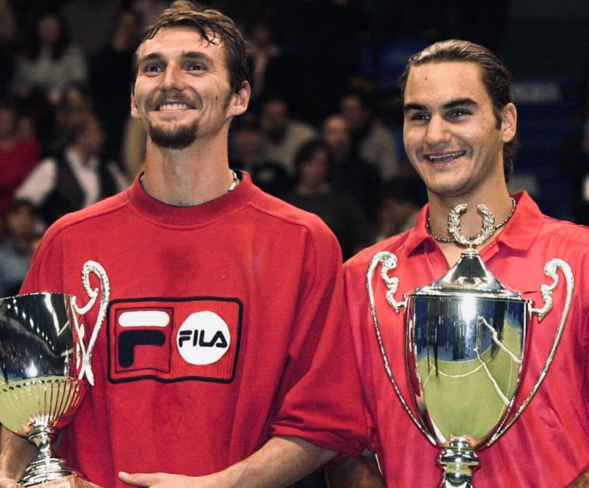 Julien Boutter (à g.) et Roger Federer en 2001 à l’issue de la finale du tournoi de Milan, le premier titre ATP décroché par le Suisse. Photo Twitter @MoselleOpenLa carrière de Roger Federer, qui vient d’annoncer sa retraite, est étroitement liée à celle du Messin Julien Boutter.