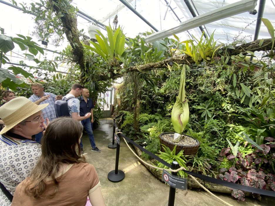 Avant même sa floraison, l’amorphophallus titanum a attiré 5000 curieux dans les serres. Photo La Semaine.C’est l’événement de la décennie pour les équipes scientifiques du Jardin botanique du Grand Nancy : la floraison de l’Arum titan, la plus grande du genre jamais observée en France. 15 000 visiteurs sont attendus pour cette occasion qui braque les projecteurs médiatiques vers le site métropolitain.