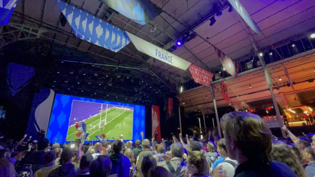 Il y a de quoi en prendre plein les yeux et plein les oreilles dans la grande halle de la Villette et dans le parc à côté. Depuis le début des Jeux olympiques, c’est ici que se trouve le Club France, cette fan zone ouverte pendant les JO. Un lieu, et de multiples possibilités pour les amoureux du sport de passage à Paris cet été. Sur place, on peut suivre devant un écran géant (à l’intérieur et/ou en extérieur) le parcours des sportifs français. Lorsque nous nous y rendons, nous suivons l’épopée de l’équipe de France de rugby à 7. Ambiance garantie.