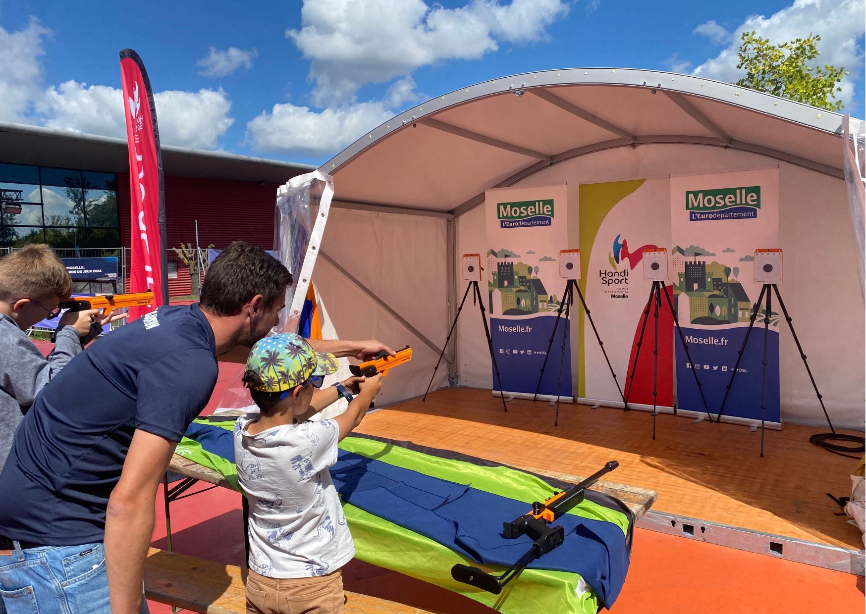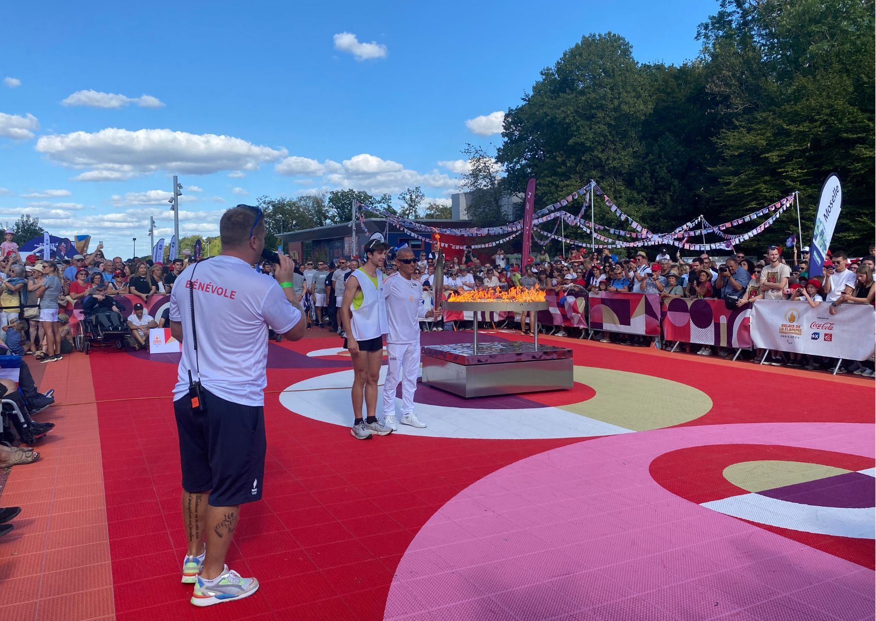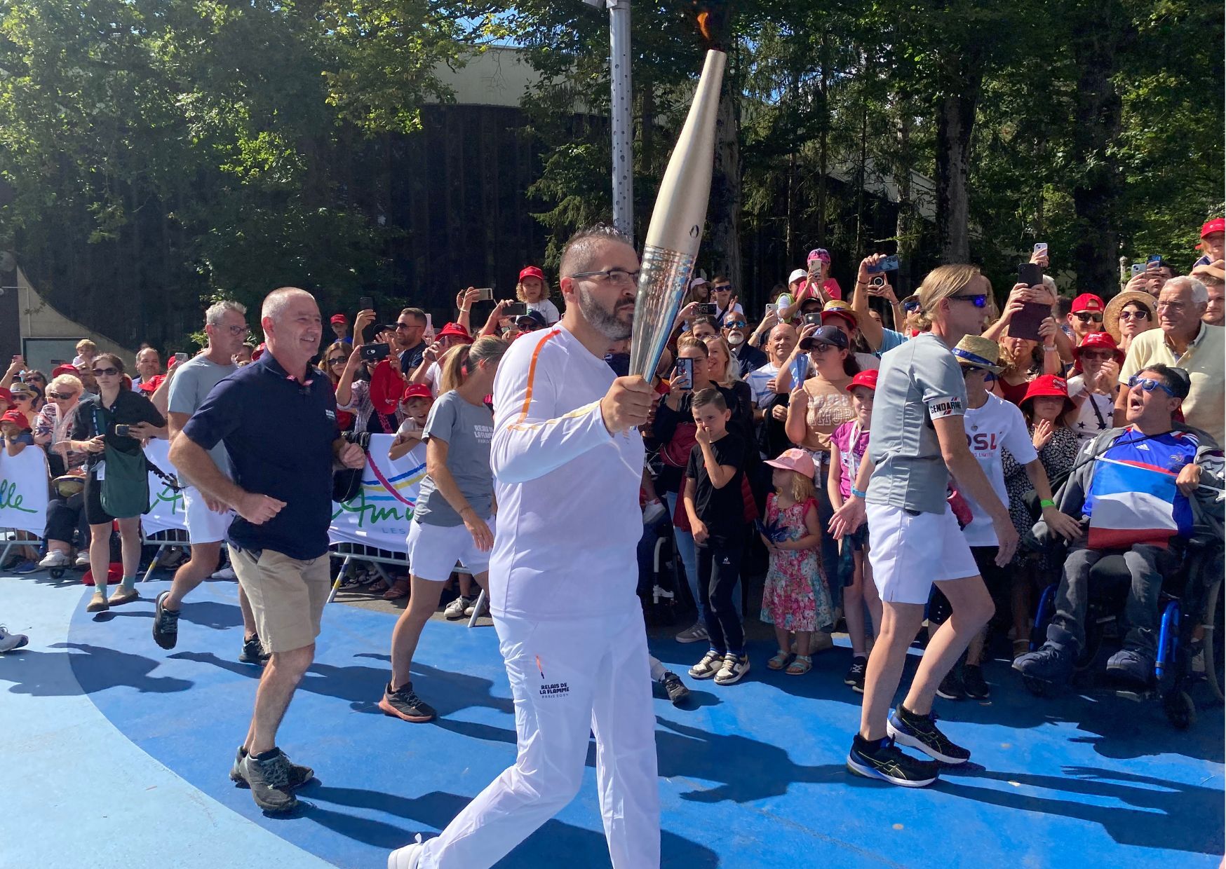 Près de 5 000 visiteurs, selon les organisateurs, ont fait le déplacement pour apercevoir cet emblème. Les festivités du village olympique d’Amnéville ont débuté dès 10 heures. Au programme : ateliers de sensibilisation ou encore activités sportives (tennis de table, escalade, beach-volley, padel, tir laser), tout était réuni pour « partager un super moment en famille », selon Killian, un Amnévillois de 38 ans. Pour d’autres, l’objectif était tourné vers le handisport. Julien et Mélanie, agents de développement au Comité Handisport de Moselle, ont animé le basket fauteuil. « En apprenant à se servir du fauteuil tout en jouant au basket, les gens prennent pleinement conscience des difficultés de la discipline », expliquent-ils. Les amateurs ne semblent pas se décourager pour autant. Jade, une jeune Thionvilloise de 11 ans, était très fière de sa performance. « C’était un peu dur d’utiliser le fauteuil au début, mais j’ai quand même marqué plusieurs paniers ».