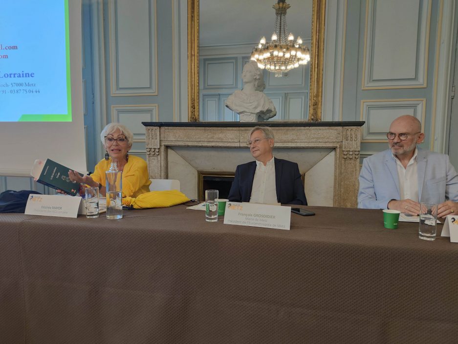 Vernissages, conférences, ateliers, lectures, cinéma, théâtre… les JECJ font la place à toute forme de culture pour une immersion totale. Une aubaine pour Patrick Thil, l’adjoint à la culture et aux cultes de la Ville, viscéralement attaché à ces Journées qu’il juge indispensables dans le calendrier messin : « L’éducation artistique est primordiale. La religion relie la société à un dieu, mais aussi et surtout tous les hommes entre eux. » « La culture juive n’appartient pas seulement aux Juifs, mais bien à tout le monde. Les JECJ, c’est aussi l’harmonisation sociale. Tout le monde est bienvenu. La compréhension de l’autre est vecteur de paix », martèle Désirée Mayer, présidente de l’association JECJ-Lorraine qui porte les manifestations en Moselle.Parmi les grands rendez-vous de cette édition 2022-2023, le concert Naoni se tiendra le 29 septembre (à 20 h) à l’Arsenal et promet de faire découvrir le folklore juif et ukrainien de toutes les régions du pays aujourd’hui meurtri. « En Ukraine, lors du jumelage entre la ville de Tchernivtsi et Metz, on nous a parlé de ces Journées », se réjouit Désirée Mayer. À l’Arsenal, autour de concerts, d’animations et d’un dîner de gala, le dernier week-end de septembre sera d’ailleurs dédié à cette nouvelle amitié entre les deux villes européennes. Le 2 octobre, l’Arsenal toujours sera le théâtre d’une autre exploration musicale : un concert Tsuzamen – Sirba Octet mêlera le répertoire klezmer à celui yiddish et tzigane. L’occasion d’un dialogue couplé à une balade entre les peuples. Mais les JECJ, c’est aussi ça : le jeudi 24 novembre, changement de registre avec le député européen Raphaël Glucksmann qui tiendra une conférence sur la guerre en Ukraine et ses enjeux en Europe. Le programme en intégralité sur www.jecjlorraine.frLes Journées Européennes de la Culture Juive-Lorraine se tiendront du 18 août 2022 au 19 janvier 2023, sur le thème « Renouveau ». Une conférence de presse s’est tenue ce mardi matin, présidée par Désirée MAYER Présidente des JEJC Lorraine, @GrosdidierMetz et @PatrickThil pic.twitter.com/2xxSsLpyey