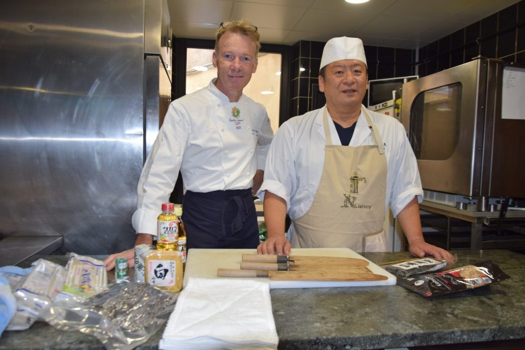 Patrick Fréchin et Koji Kawamura. Photo La SemainePour fêter les cinquante ans du jumelage de Nancy avec la ville japonaise de Kanazawa, une délégation a été invitée à passer la semaine dans la cité ducale. Élus, artistes, professionnels de santé, mais aussi chefs cuisiniers profitent de leur venue pour échanger avec les professionnels et les étudiants nancéiens. Nous les avons suivis leurs premiers pas sur le sol lorrain.