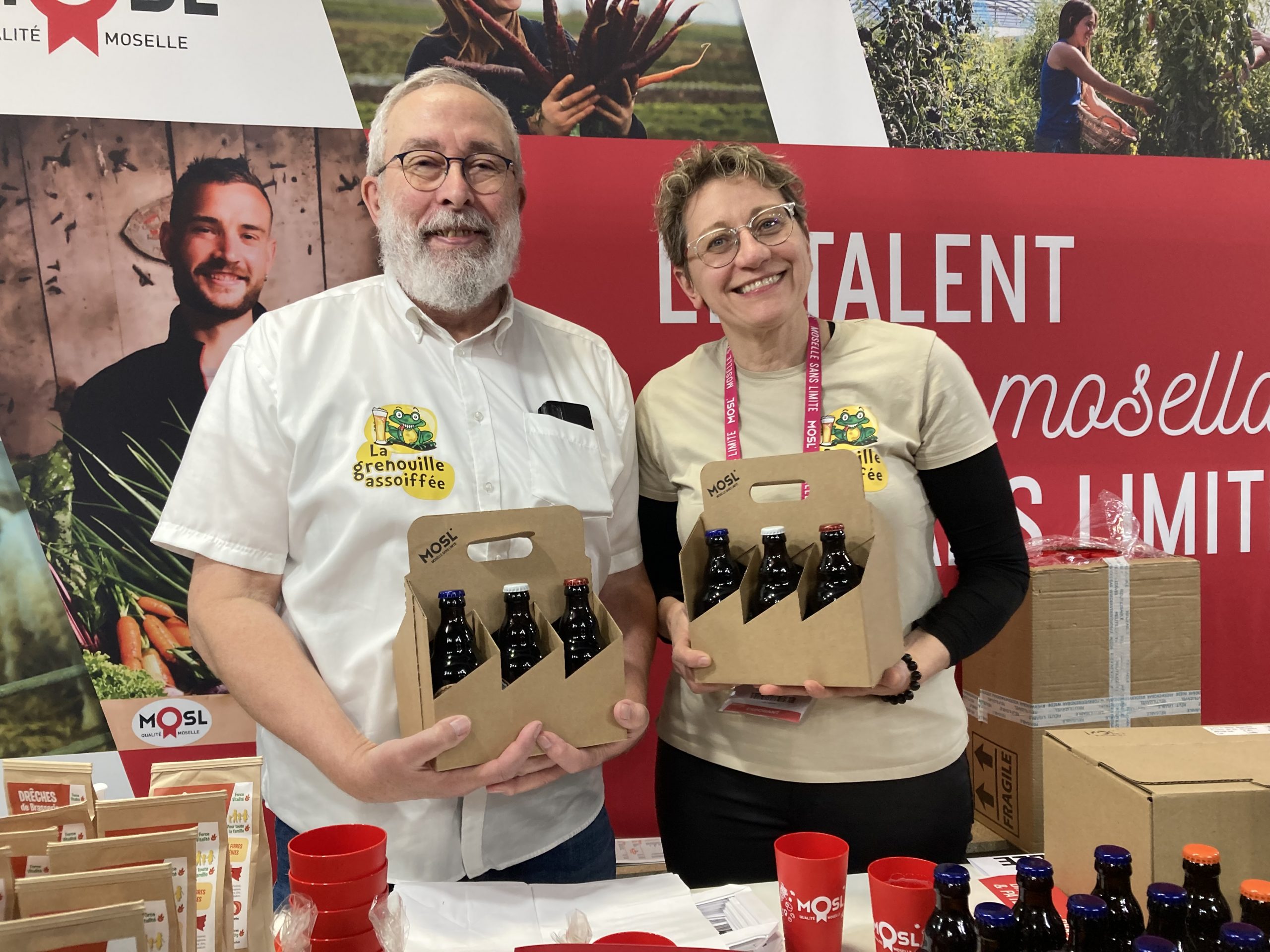 Cette micro-brasserie, localisée à Vahl-lès-Bénestroff, propose des bières de fermentation haute, ce qui leur donne un goût se rapprochant de leurs homologues belges ou anglaises. À sa tête : Caroline et Jean-Marc Lichtle, partenaires à la vie et à la brasserie. Blonde, blanche, ambrée, brune ou de saison, La Grenouille Assoiffée propose une large gamme. Sans oublier la cuvée phare : la bière à la mirabelle, qui avait d’ailleurs fait un carton lors du dernier Salon de l’agriculture. Difficile de faire plus local. Les brassins sont scrupuleusement analysés avant mise en bouteille… à l’aide de tests PCR. « Cette technique nous permet de chercher des variations dans la levure, signe d’une pollution de la boisson. Si le brassin ne convient pas, on en fait de la liqueur », développe Jean-Marc Lichtle. Des farines à base de drêches (déchets issus du brassage) ont aussi été lancées en partenariat avec le Moulin Arnet de Volmunster et la ferme de la Gissière de Sarrebourg. Ainsi transformées, elles constituent un parfait complément alimentaire riche en fibres et en protéines. La maison en fait même des pâtes.