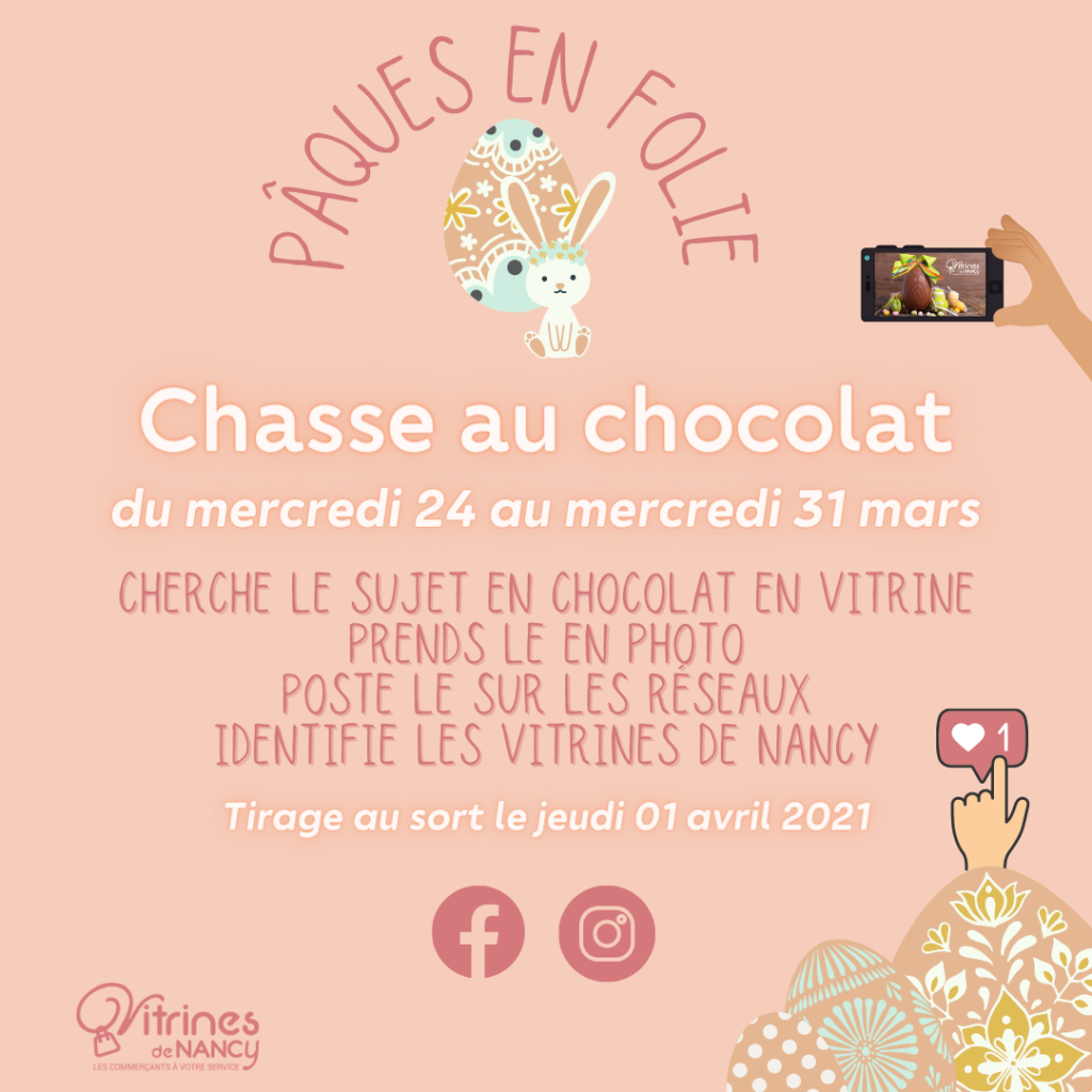 À l’approche des fêtes de Pâques, l’association des commerçants Les Vitrines de Nancy organise du 24 au 31 mars une chasse aux chocolats.