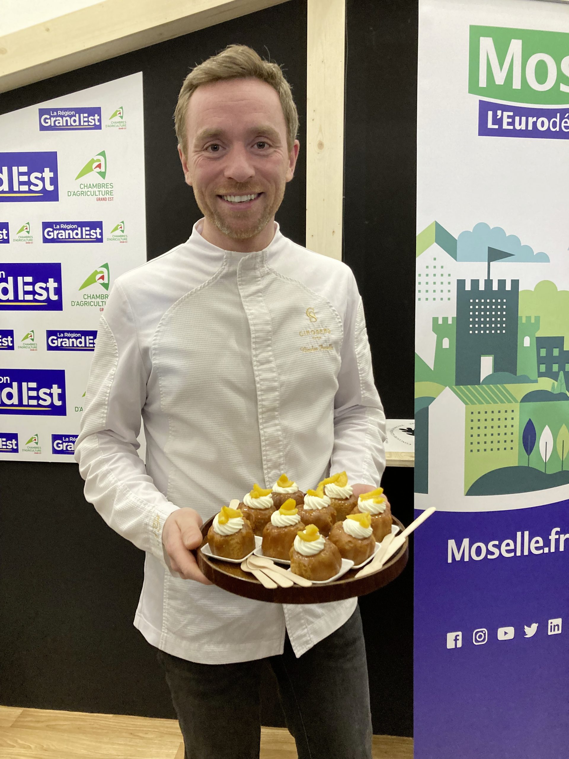 Le chef pâtissier Nicolas Paciello et ses fameux babas à la mirabelle. Photo La Semaine