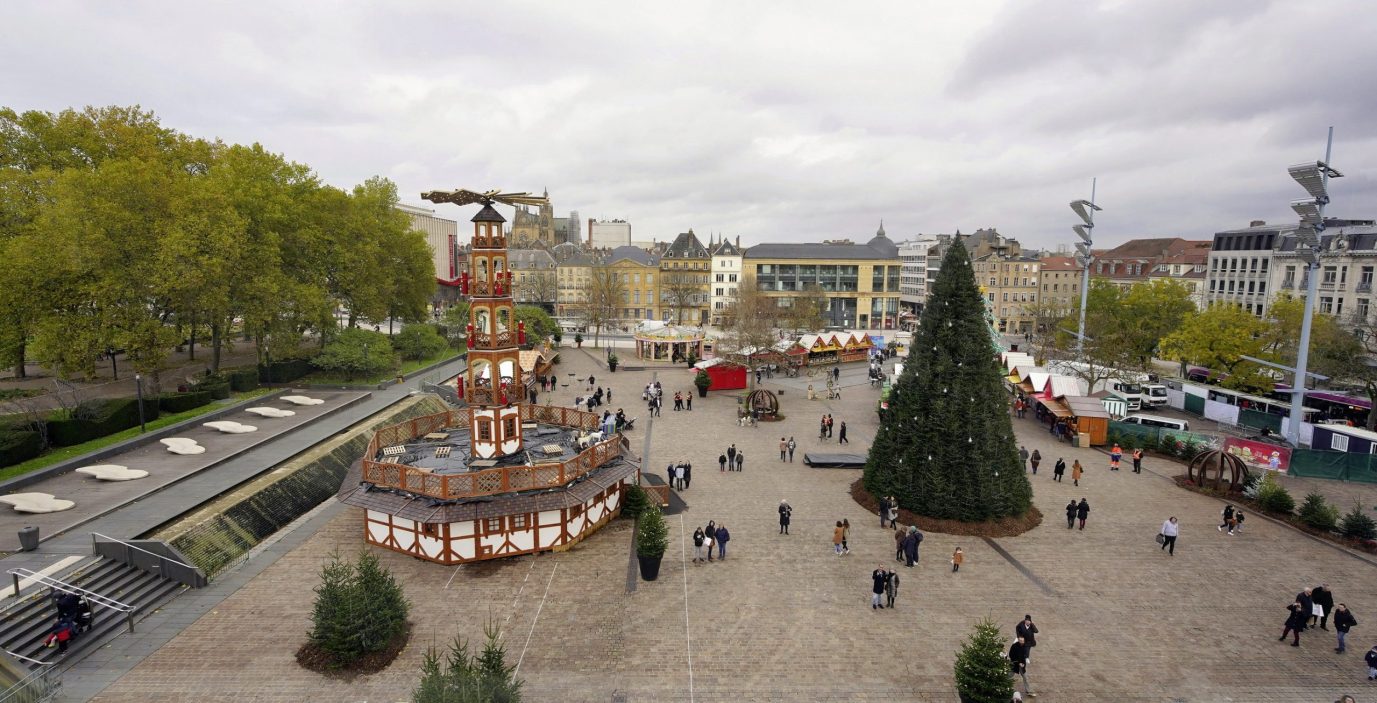 Pour une fois, le Covid ne figure pas sur le banc des accusés. Plutôt les attentats et l’ombre meurtrière imprimée à leur suite, depuis les attaques contre Paris et Saint-Denis en 2015. Le traumatisme avait imposé un dispositif Vigipirate renforcé avec fouille à l’entrée des marchés de Noël et, les délimitant, barrières de protection aussi grises et froides que dissuasives. Cette année, le dispositif a été levé. Sans incident, à l’heure d’écrire ces lignes. « C’est compliqué, la convivialité, derrière des barrières », observe le maire François Grosdidier, ravi de voir les places mobilisées respirer à l’air libre à nouveau. « Cela a renforcé, poursuit-il, la synergie entre les chalets et les commerces alentour. C’est quand même le but. L’objectif n’est pas de développer un tourisme d’activité commerciale parallèle qui s’ajoute, sans que cela ne profite au commerce sédentaire. Il faut que les deux soient en symbiose. »