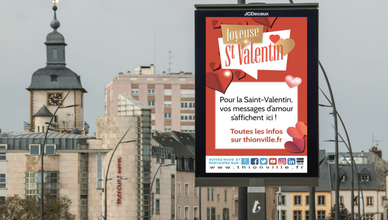 Initiative originale de la municipalité de Thionville qui invite pour la Saint-Valentin les amoureux à publier leurs messages d’amour dans le centre-ville.