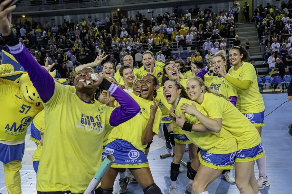 Après 2019 et 2022, Metz Handball participera pour la troisième fois de son histoire au prestigieux Final Four de la Ligue des Champions. L’équipe d’Emmanuel Mayonnade n’a pas tremblé, lors du quart de finale retour, pour franchir l’écueil roumain du CSM Bucarest. Un grand bonheur et une juste récompense pour un club qui ne s’interdit rien, les 1er et 2 juin prochains à Budapest. « Tout le jour, mon cœur bat, chavire et chancelle. C’est l’amour qui vient avec je ne sais quoi. C’est l’amour bonjour, bonjour les demoiselles. Y a d’la joie. Partout y a d’la joie ». La célèbre chanson de Charles Trenet aurait pu retentir dans les Arènes tant elle collait à l’atmosphère qui y régnait. Au lieu de ça, Hatadou Sako, gardienne du temple et chauffeuse de salle invétérée, a repris, à sa sauce, un refrain bien connu des victoires d’après-match : « Oh la la, oh lé lé, mais qu’est-ce qui s’est passé, on va au Final Four. » Le public messin, fier et heureux, revêtu de son manteau de gala, tout en jaune, reprenait à tue-tête pour une communion endiablée. La fièvre du samedi soir battait son plein dans des tribunes surchauffées.