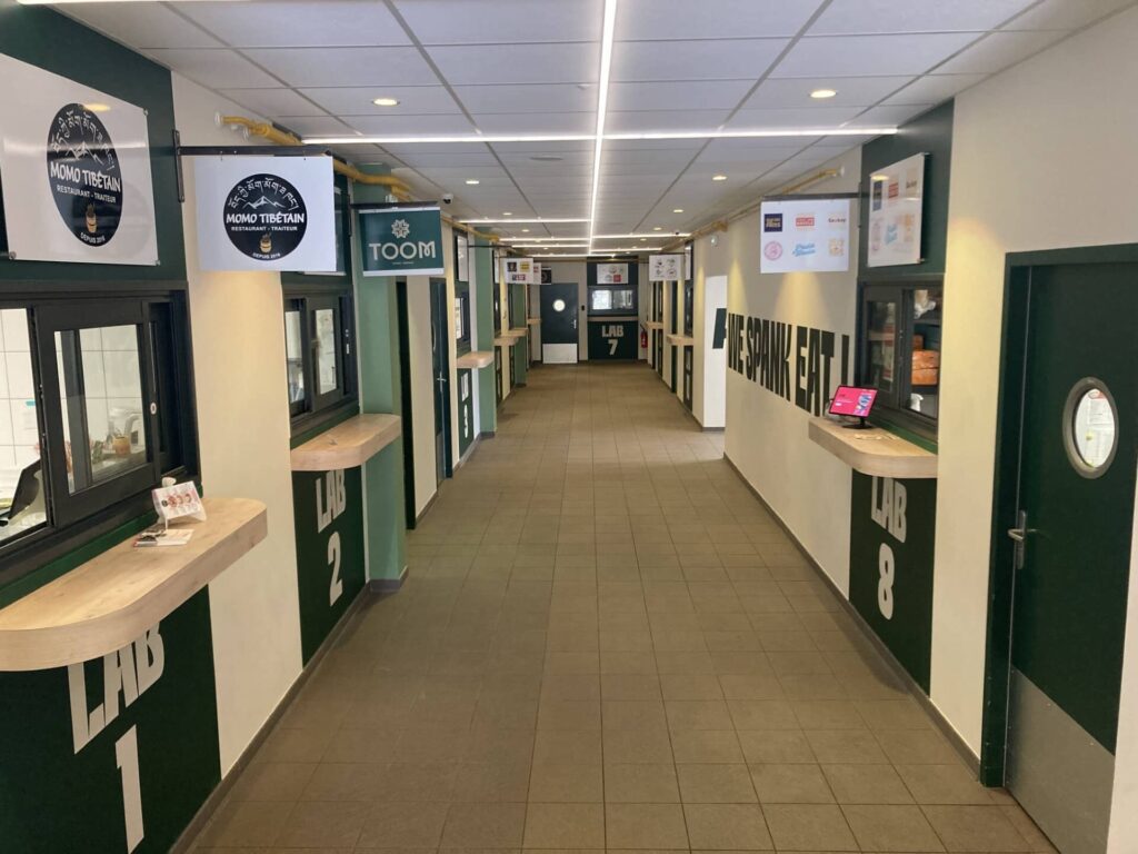 À Nancy, l’établissement Food’Lab propose un concept innovant : une dizaine de restaurateurs réunis dans un même lieu pour un espace de restauration unique. Libanais, asiatique, africain, italien, tibétain, burgers… Le choix est particulièrement diversifié. Il est possible de manger sur place ou à emporter. Concrètement, le client commande à une borne unique et peut sélectionner un ou plusieurs choix parmi les restaurants ouverts. Il suffit ensuite d’aller chercher un biper. Lorsque la commande est prête, le biper sonne.