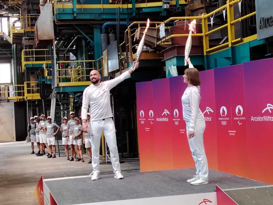 760 collaborateurs du site d’ArcelorMittal de Maizières-lès-Metz ont pu participer à une étape privée du relais de la flamme ce jeudi 27 juin. Deux salariés du groupe ont porté la Torche entre 14 h 57 et 15 h 07 devant des collaborateurs conquis et Éric Niedziela, le président d’ArcelorMittal France.