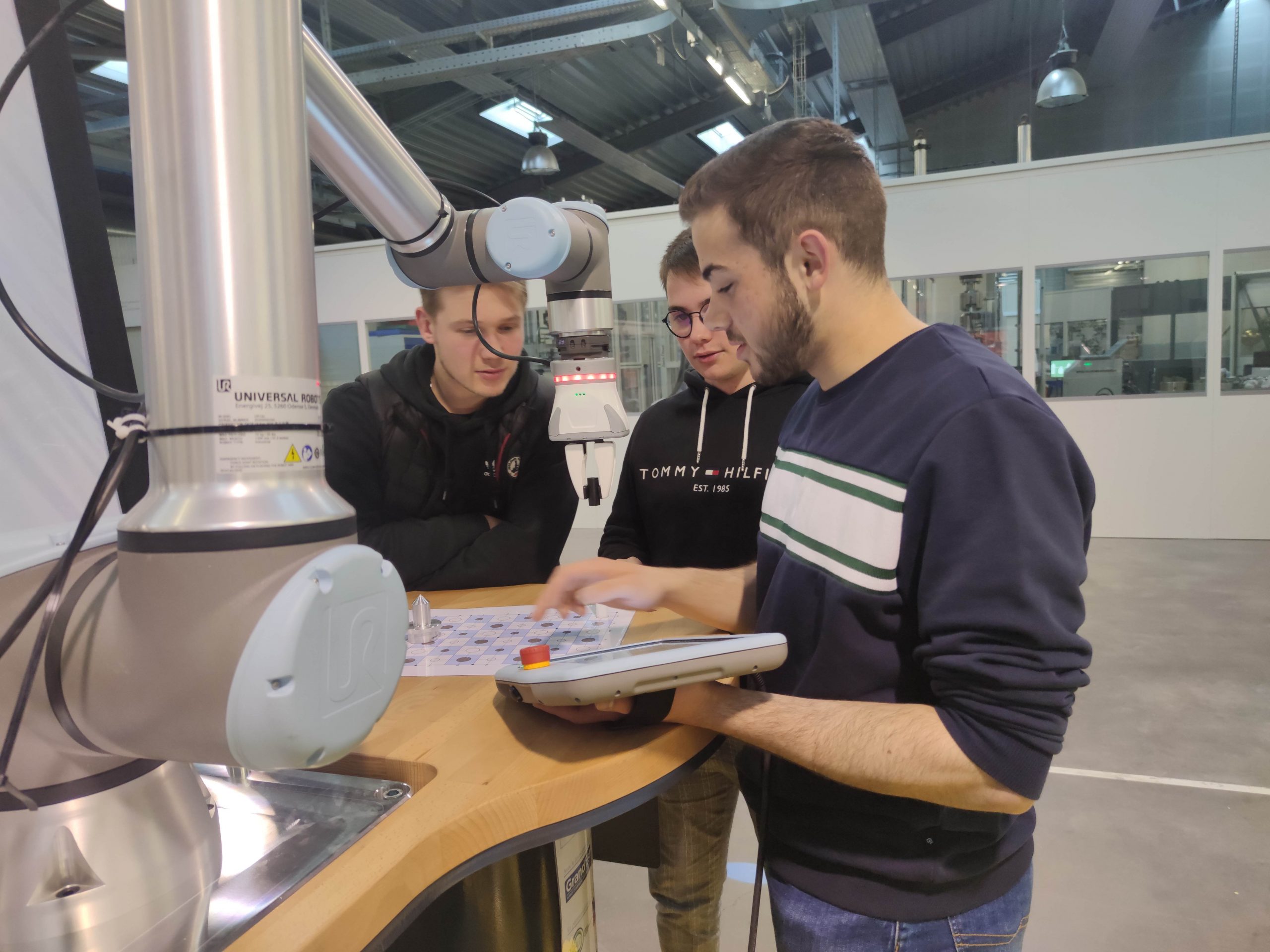 Les étudiants de l’Enim ont profité des cobots de Sysaxes pour s’exercer dans le cadre de leur TP robotique. Photo La Semaine