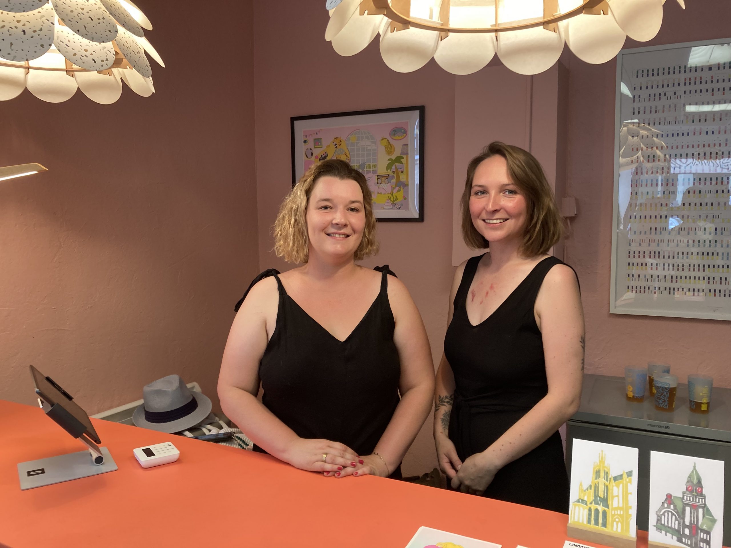 Pauline Troadec et Lucie Allard, résidentes à Bliiida, se relaient pour tenir la boutique. Photo La Semaine